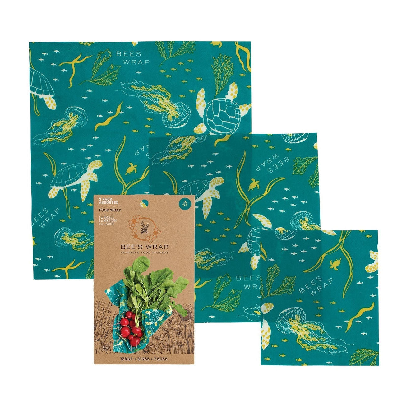 Set of 3 Bee's Wrap Ocean