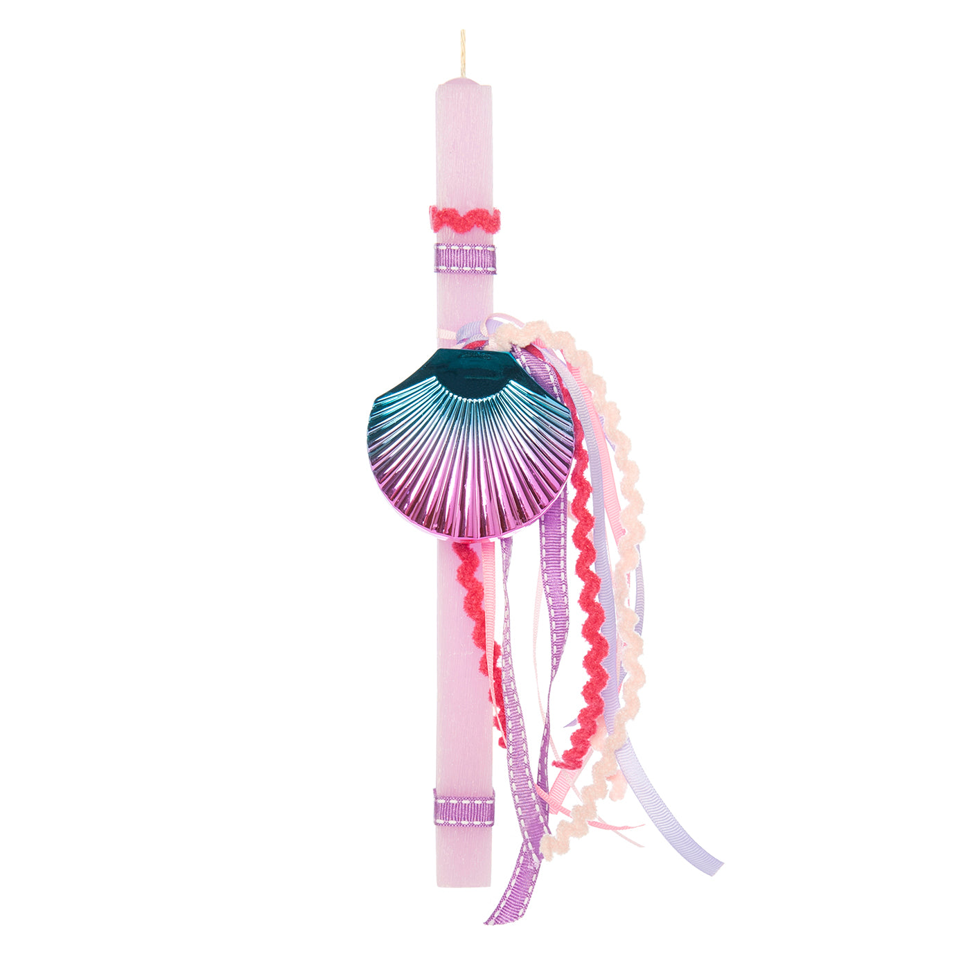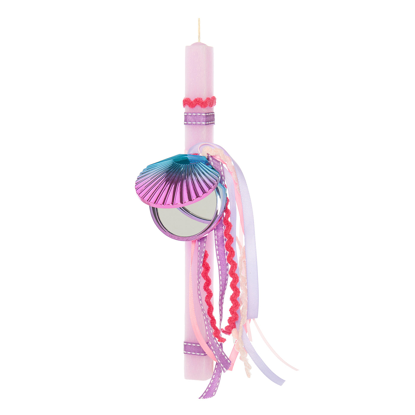 Easter candle with a shell-shaped mirror.