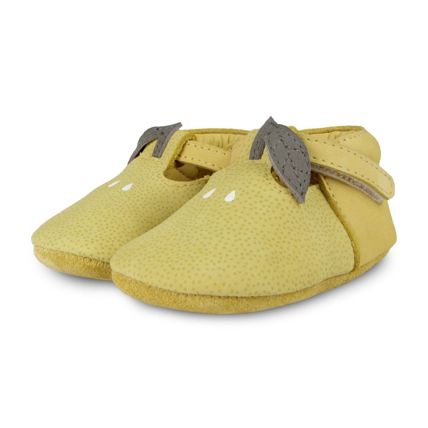 Sizes 0-6 & 6-12 feature soft, fabric sole. Sizes 12-18 & 18-24 feature rubber sole, ideal for babies that walk