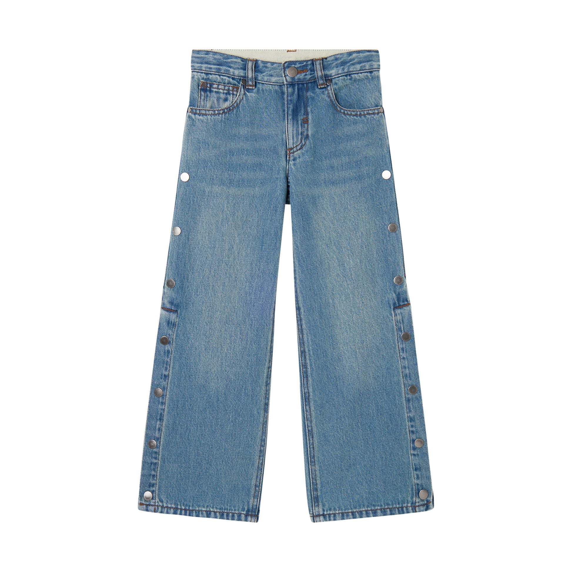 Jeans for kids with studs on both sides and adjustable waist.