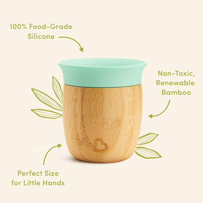 Πιείτε από το πιο οικολογικό κύπελλο από μπαμπού από τη νέα συλλογή Bambou™ της Munchκin. Η συλλογή φαγητού Bambou™ της Munchkin είναι φτιαγμένη από ανανεώσιμο μπαμπού που βοηθά στη δημιουργία ενός πιο πράσινου μέλλοντος για τα παιδιά και τον πλανήτη μας. Όταν έρθει η ώρα να αφήσετε το μπιμπερό, το Bambou™ Open Cup βοηθά το μωρό να συνεχίσει με φιλικό προς το περιβάλλον τρόπο! Αυτό το αξιολάτρευτο κύπελλο έχει μέγεθος ιδανικό για να βοηθά τα μικρά χεράκια να μαθαίνουν, αφού επιτρέπει να πιούν από οποιαδήποτε γωνία.