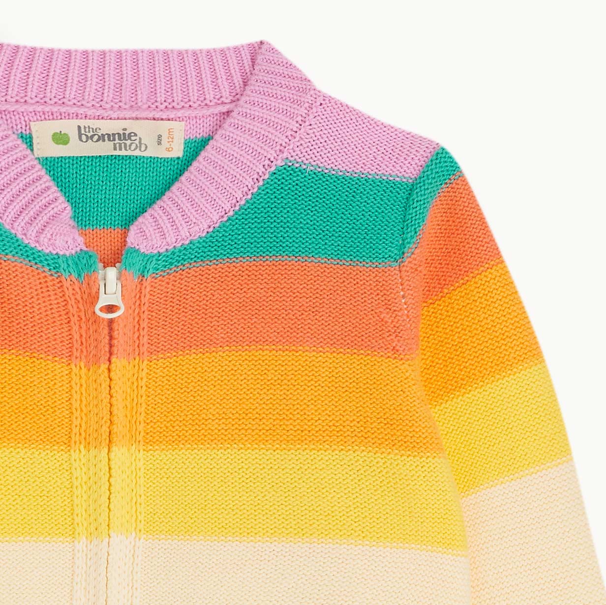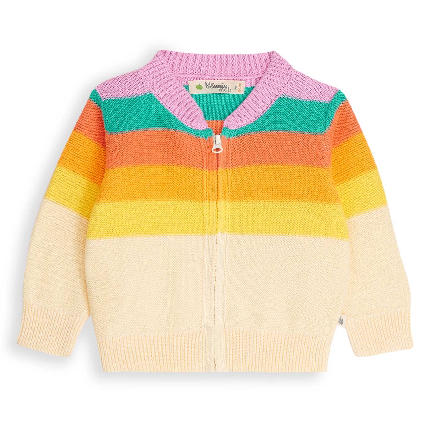 Πλεκτή ζακέτα για μωρά με ρίγες και κλείσιμο με φερμουάρ.