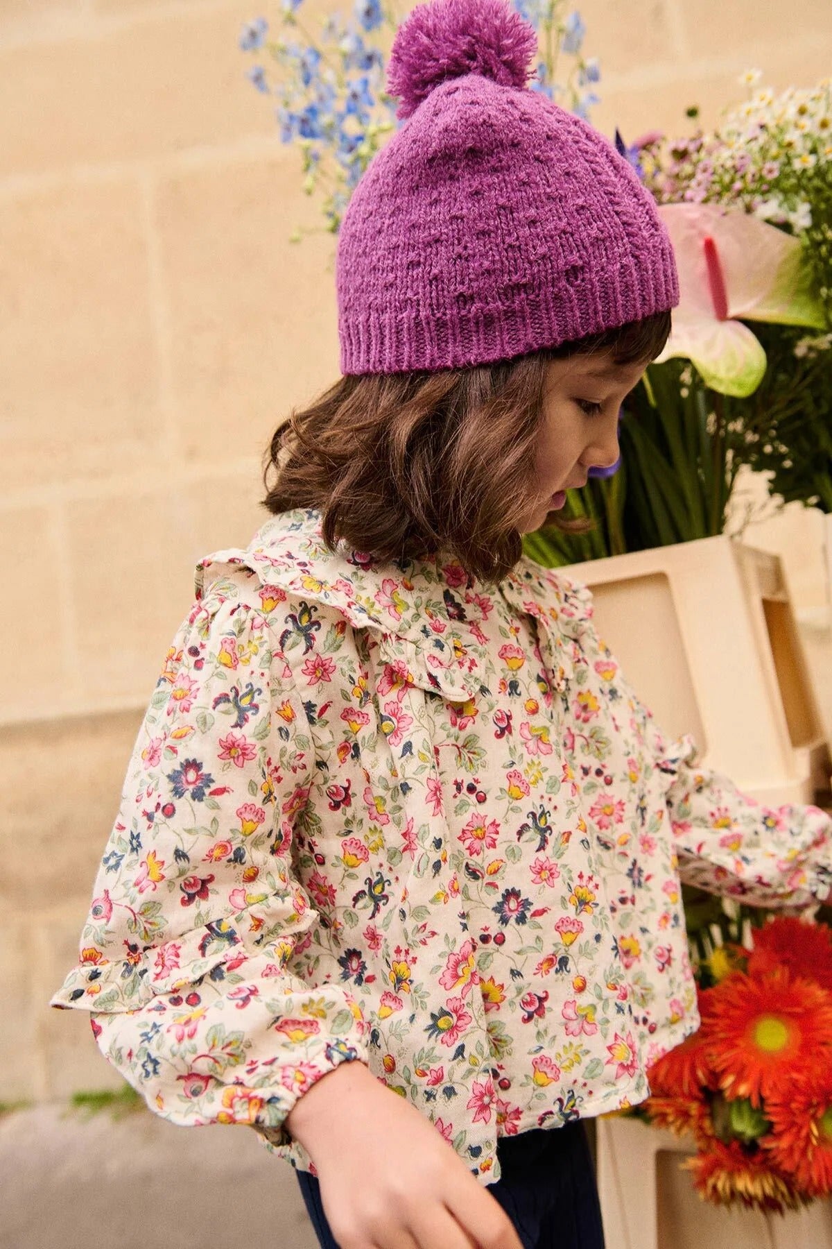 Πλεκτό σκουφί για παιδιά με διακοσμητική φούντα σε υπέροχη μωβ απόχρωση.