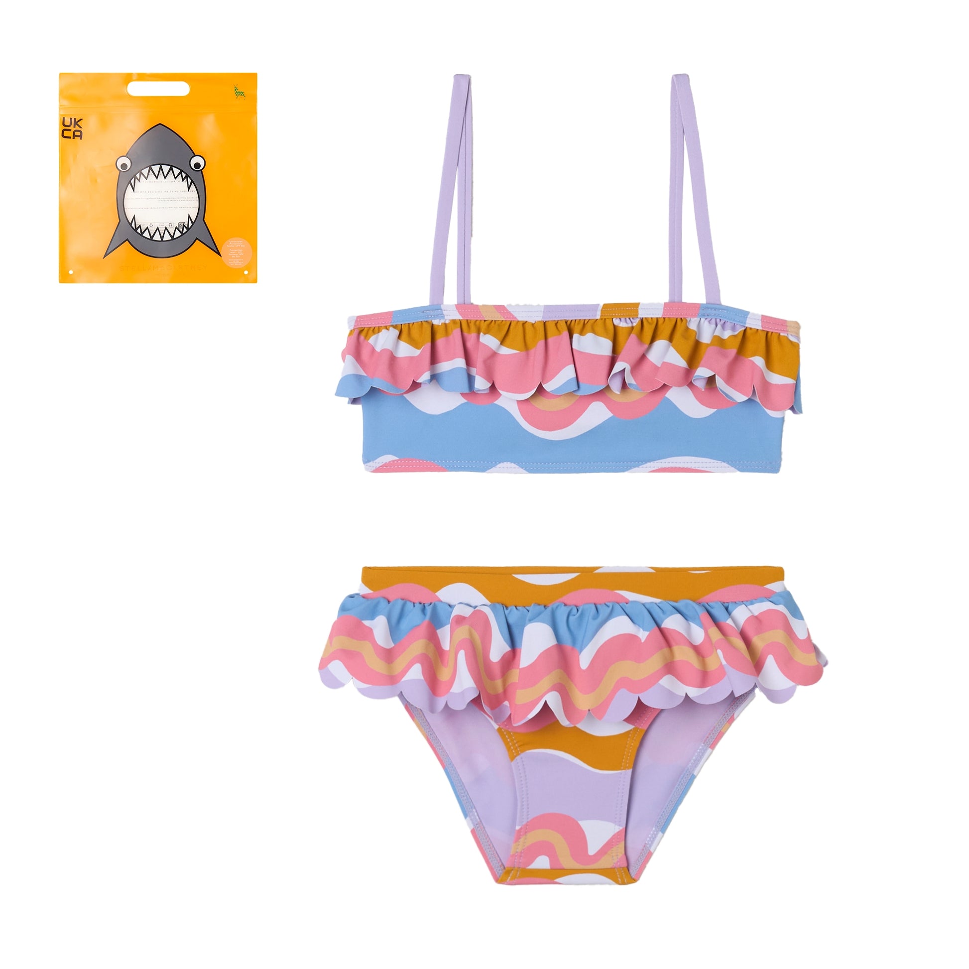 Μαγιώ μπικίνι για παιδιά με διασκεδαστικό σχέδιο σε όλη την επιφάνεια και βολάν.