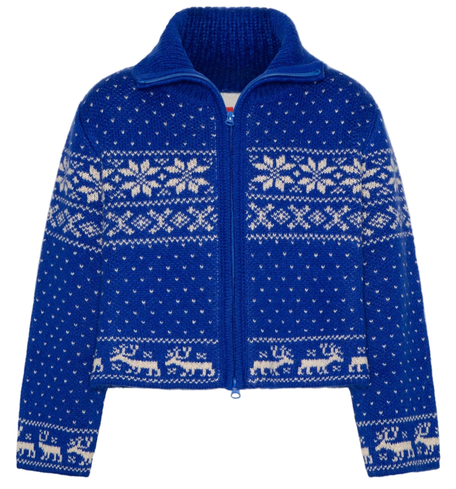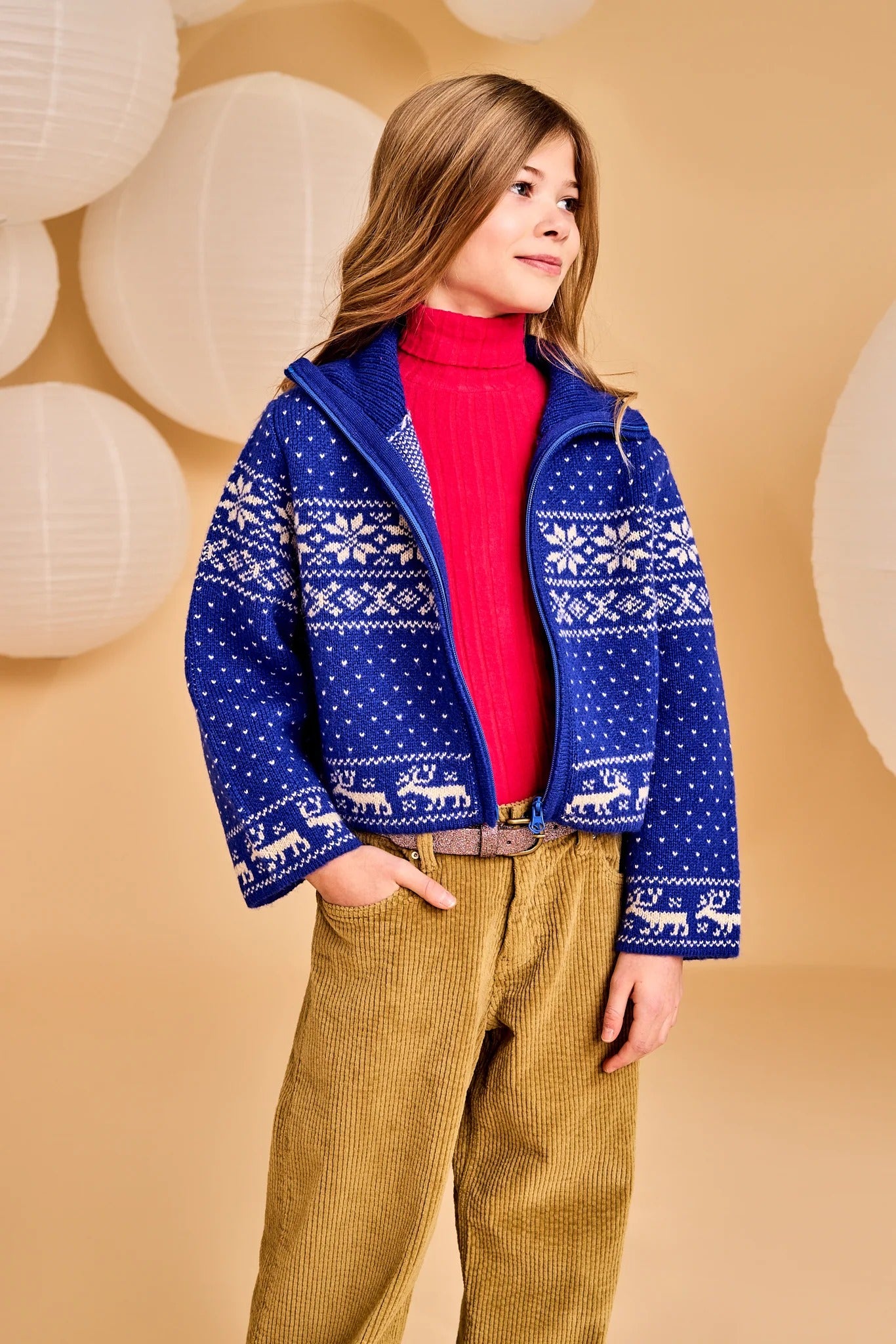 Πλεκτή ζακέτα για παιδιά με διασκεδαστικό σχέδιο σε όλη την επιφάνεια, κλείσιμο με φερμουάρ και ψηλή λαιμόκοψη.