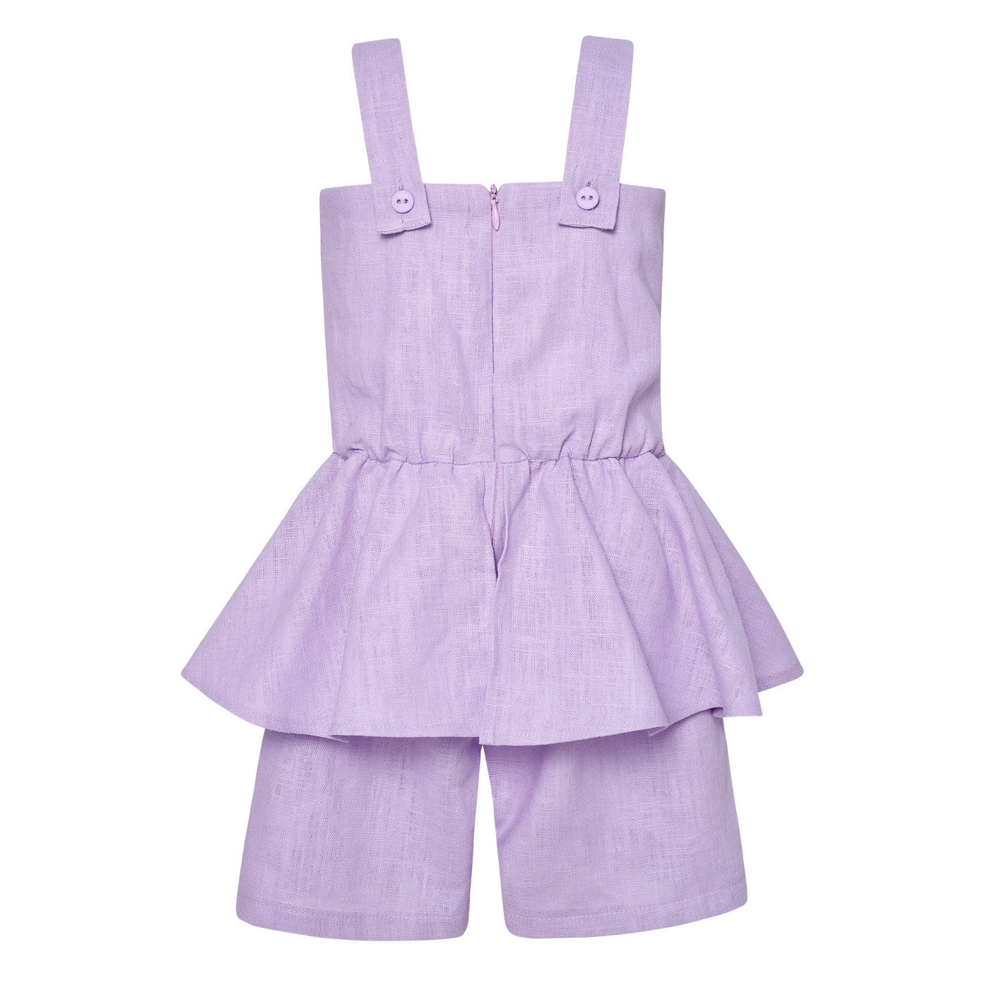 Ολόσωμη φόρμα για παιδιά με φρου-φρου, φαρδιές τιράντες και κλείσιμο με φερμουάρ.