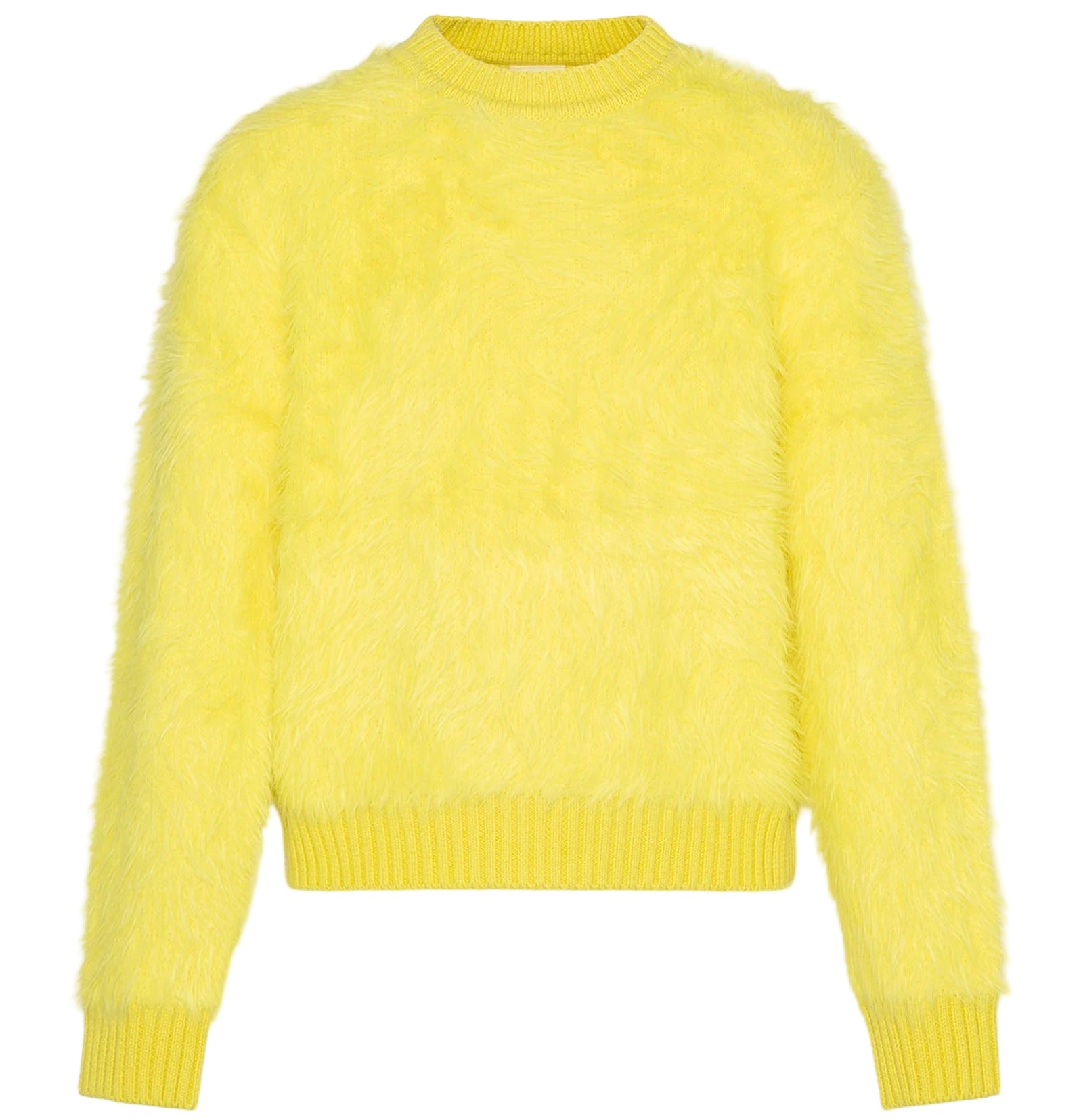Μαλακό πουλόβερ για παιδιά με μακρύτριχη ύφανση σε υπέροχη κίτρινη απόχρωση.