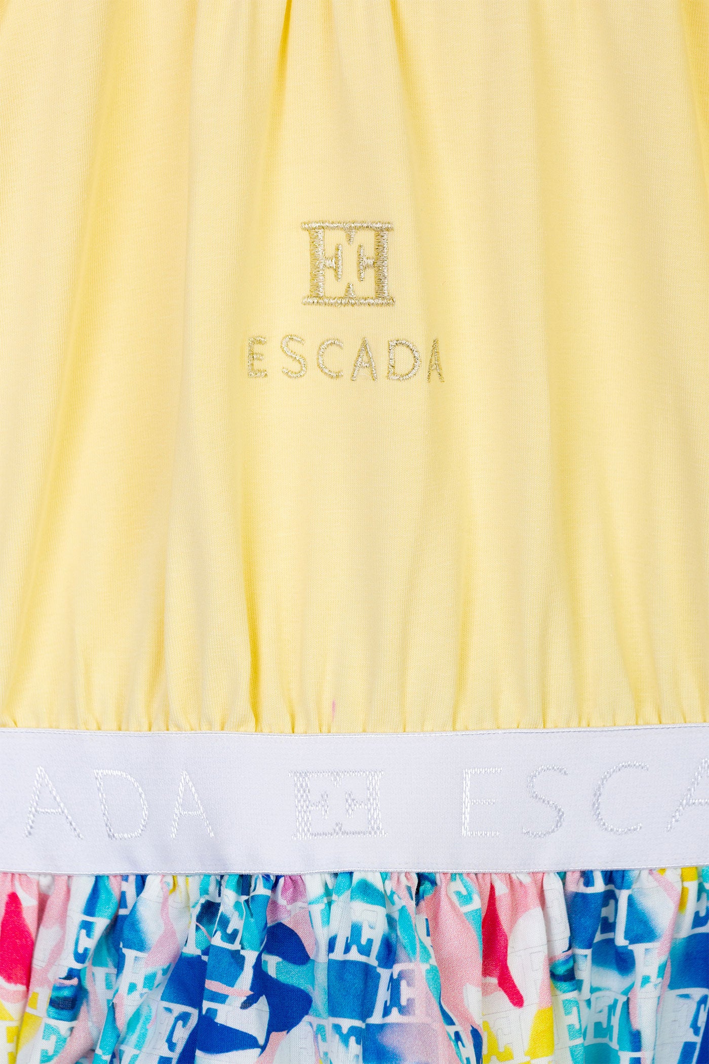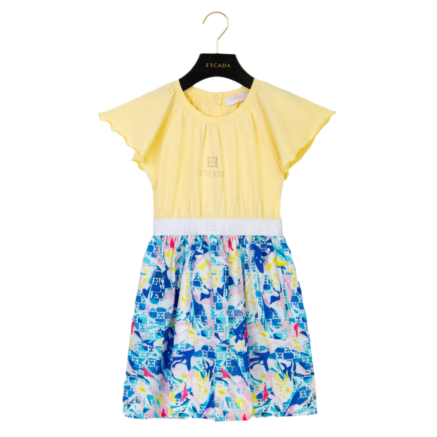 Κοντομάνικο φόρεμα για παιδιά με διασκεδαστικό σχέδιο στην φούστα και βολάν στα μανίκια. Διαθέτει κλείσιμο με κουμπιά στην πλάτη.