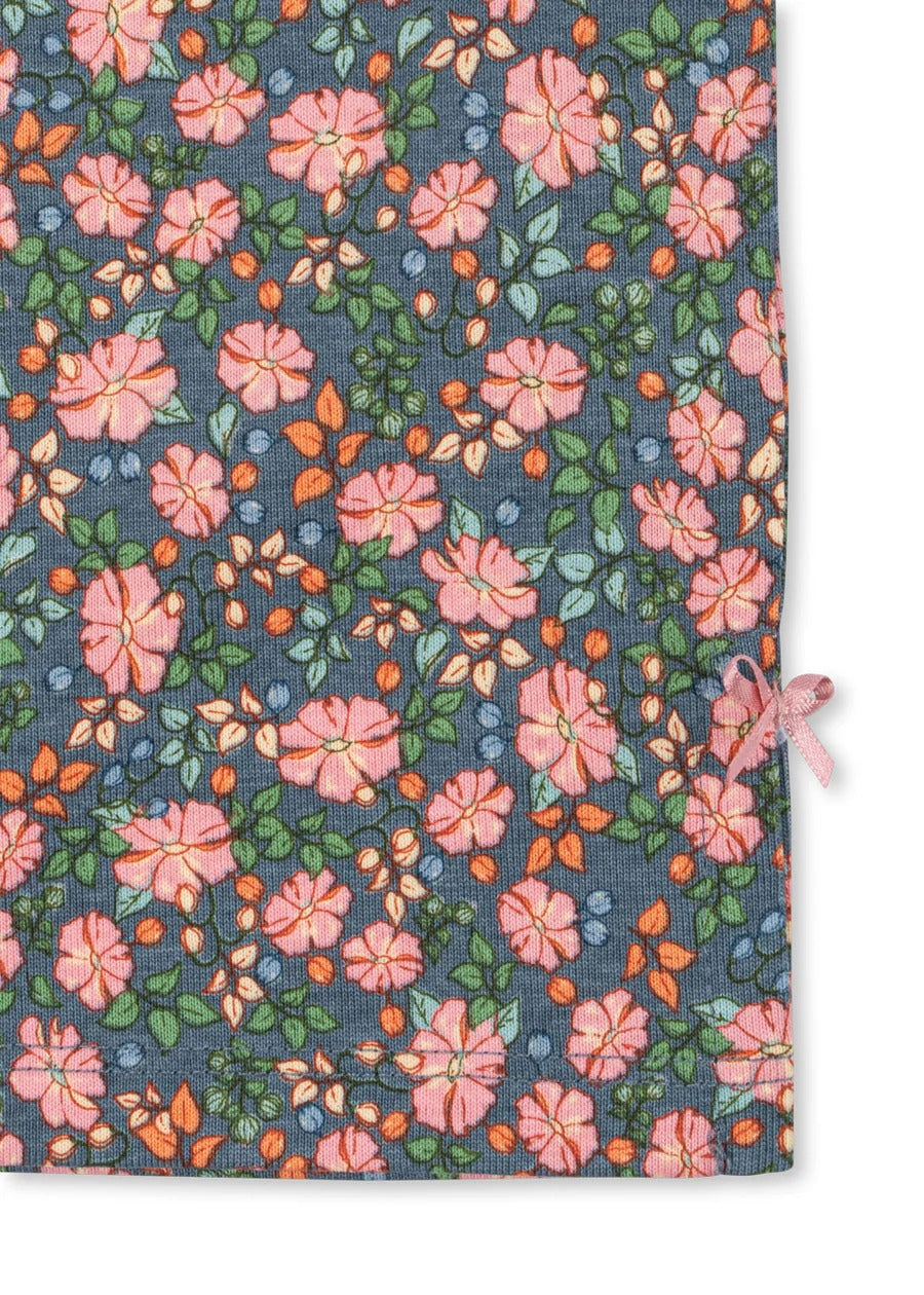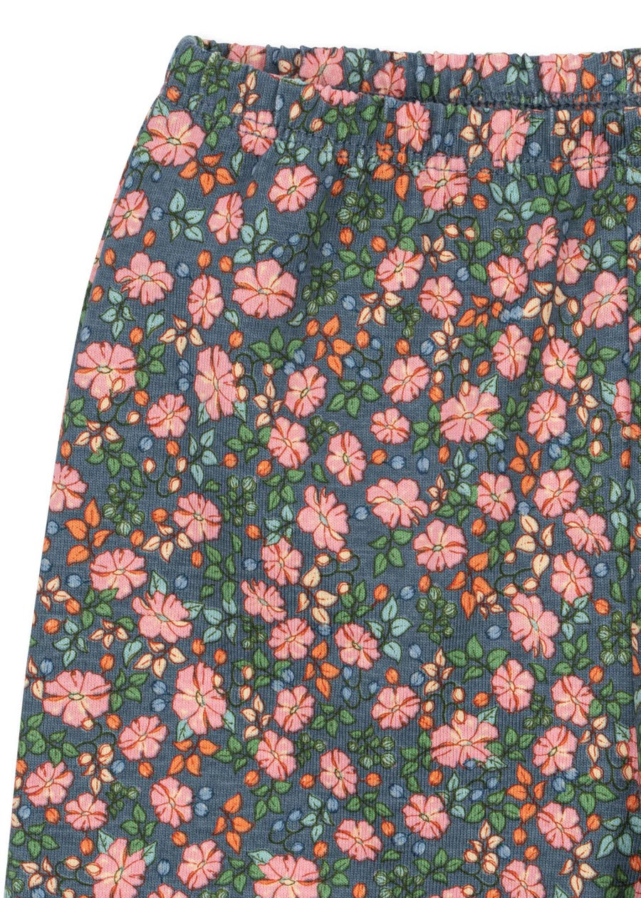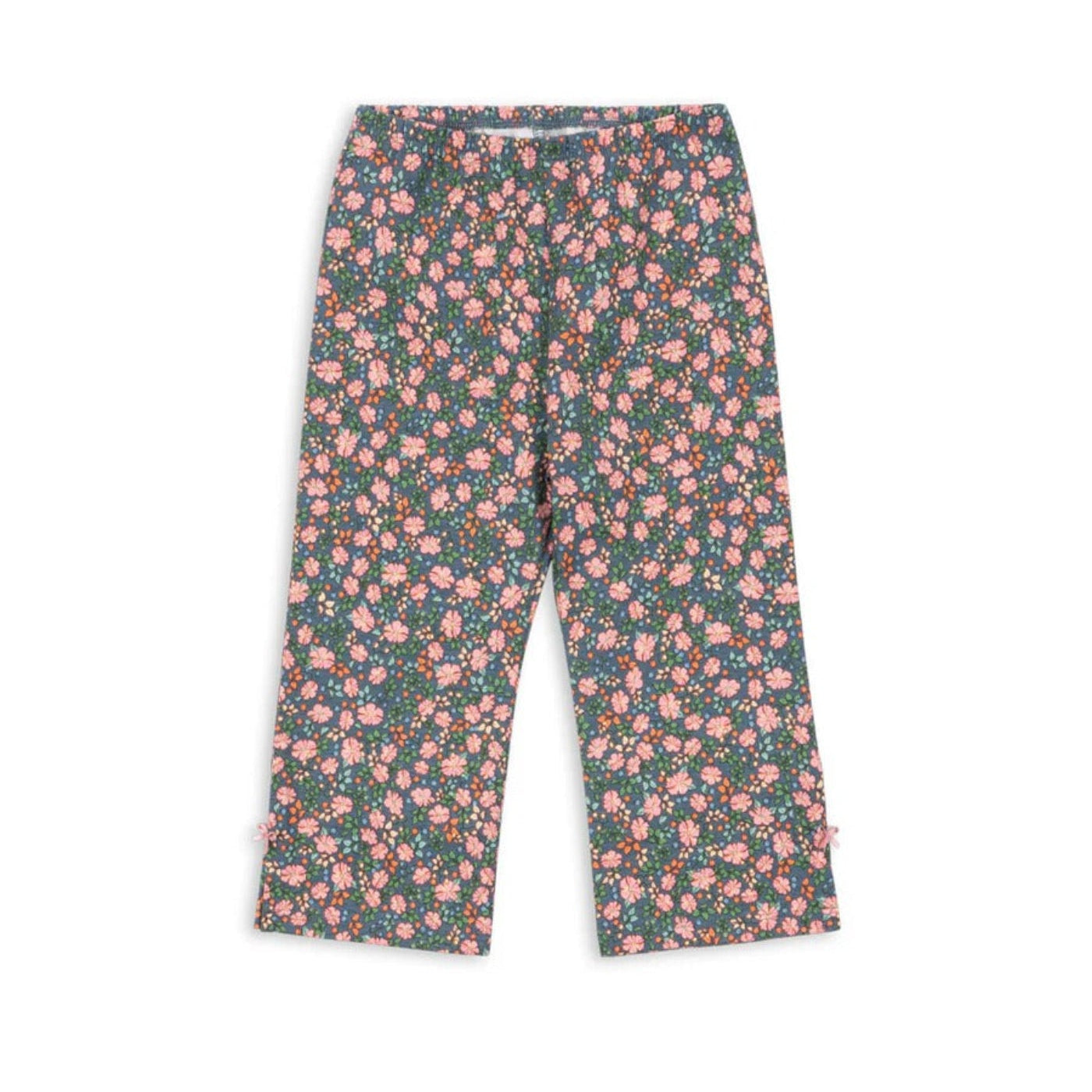 Μαλακό παντελόνι για μωρά με λουλουδάτο σχέδιο και μικροσκοπικά φιογκάκια στο κάτω στρίφωμα. Άνετη εφαρμογή με ελαστική μέση.