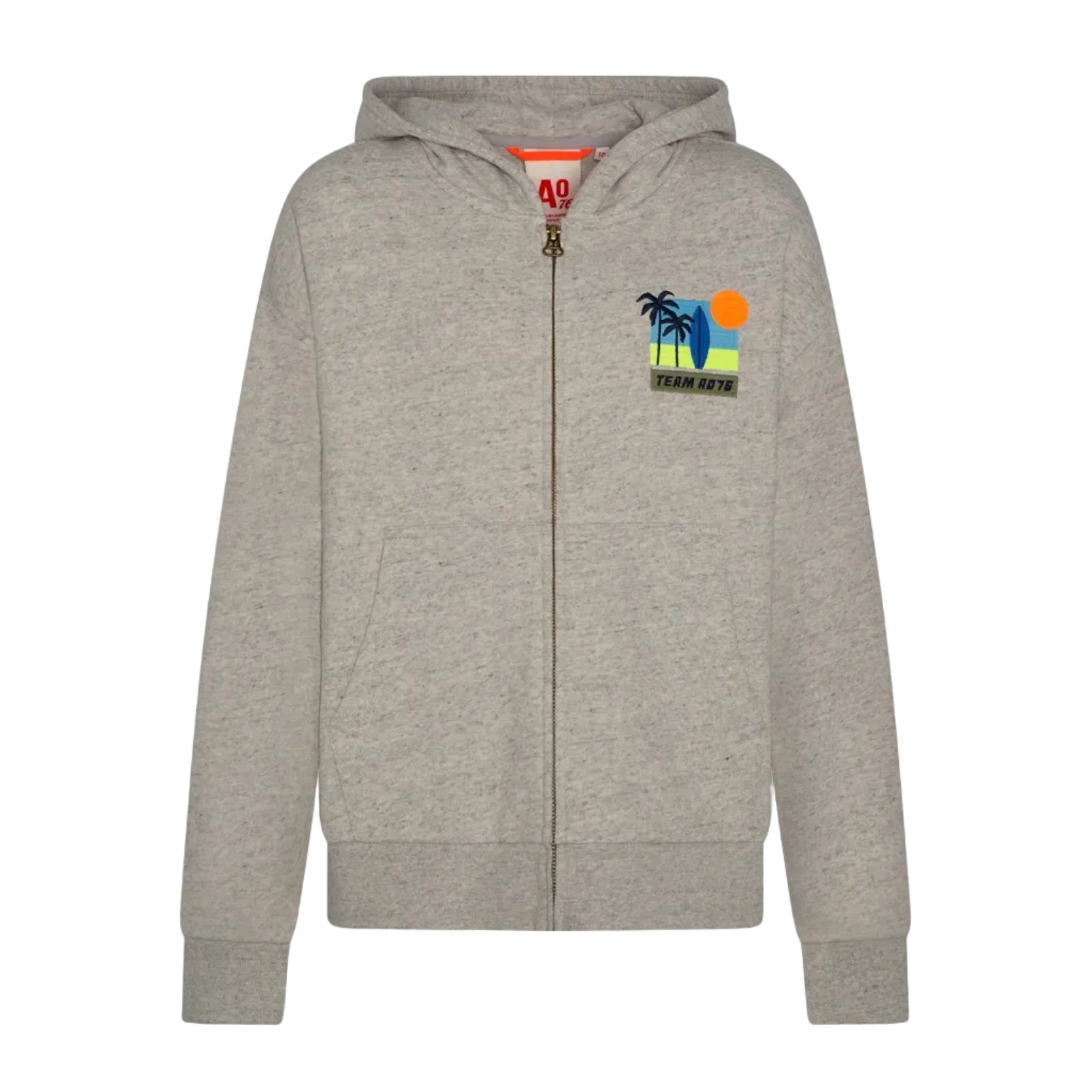 Ζακέτα φούτερ για παιδιά με διασκεδαστικό τύπωμα στο μπροστινό μέρος και κουκούλα. Διαθέτει κλείσιμο με φερμουάρ.