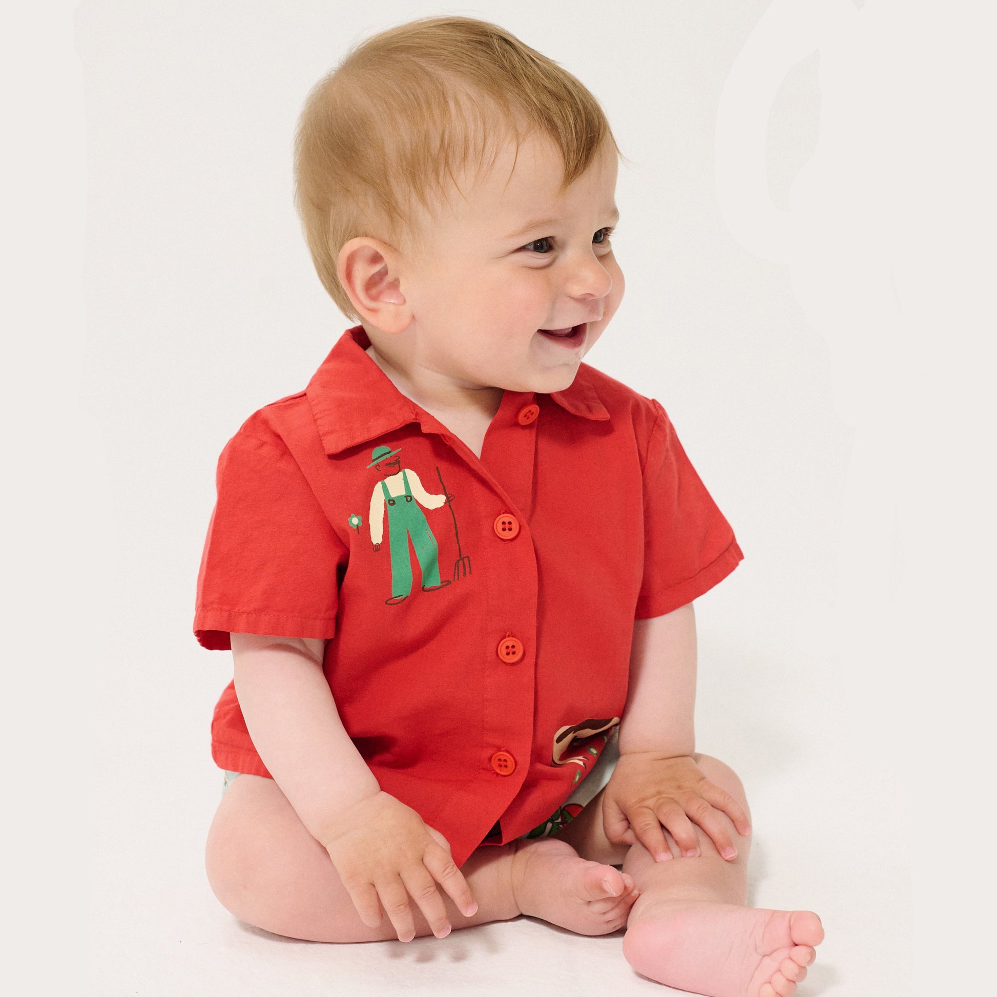 Πουκάμισο για μωρά με διασκεδαστικά σχέδια στο μπροστινό μέρος σε υπέροχη κόκκινη απόχρωση.