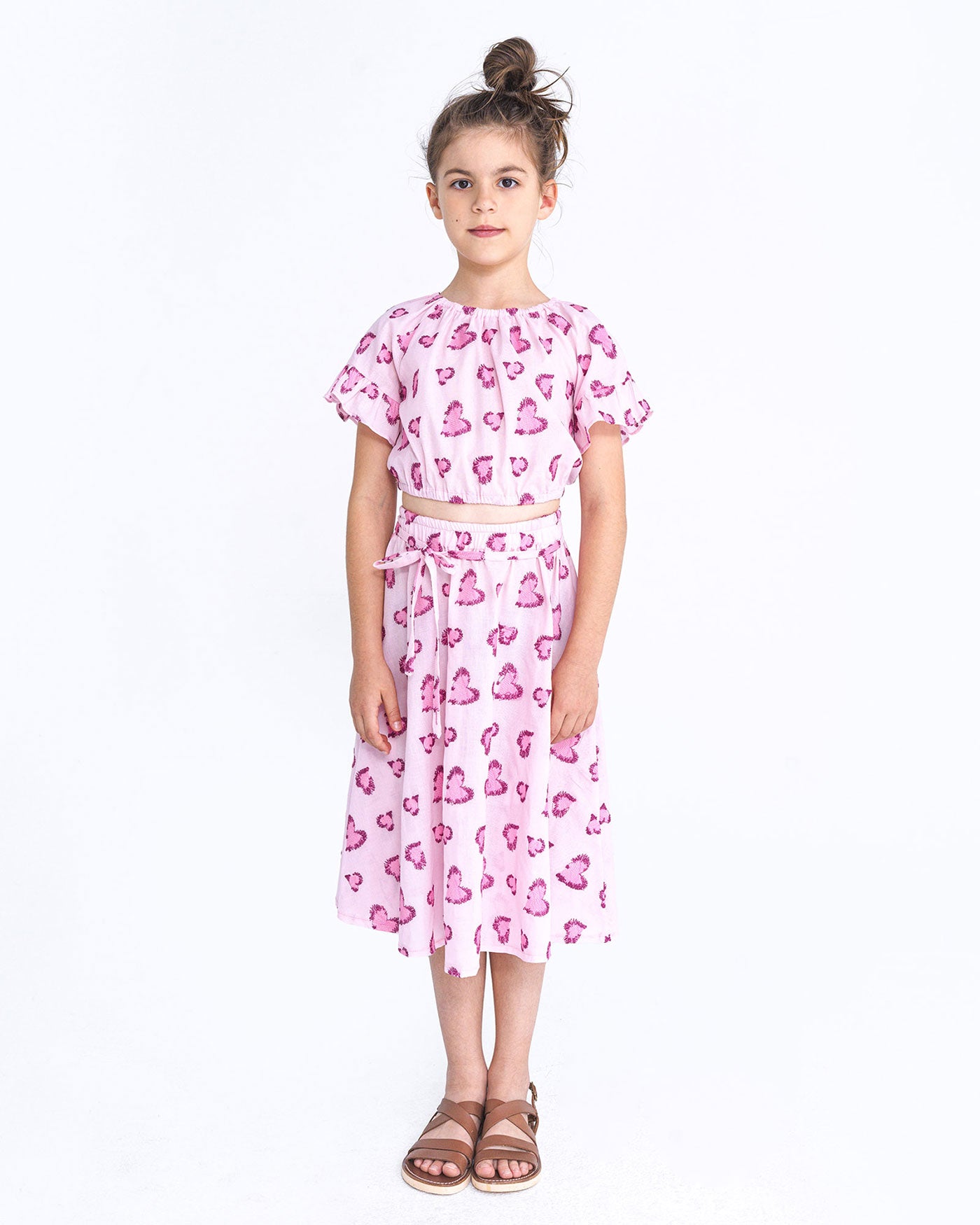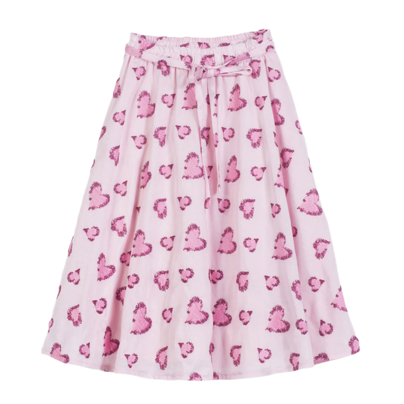 Φούστα midi για παιδιά με σχέδιο καρδιές σε όλη την επιφάνεια και ελαστική μέση με υφασμάτινη ζώνη.