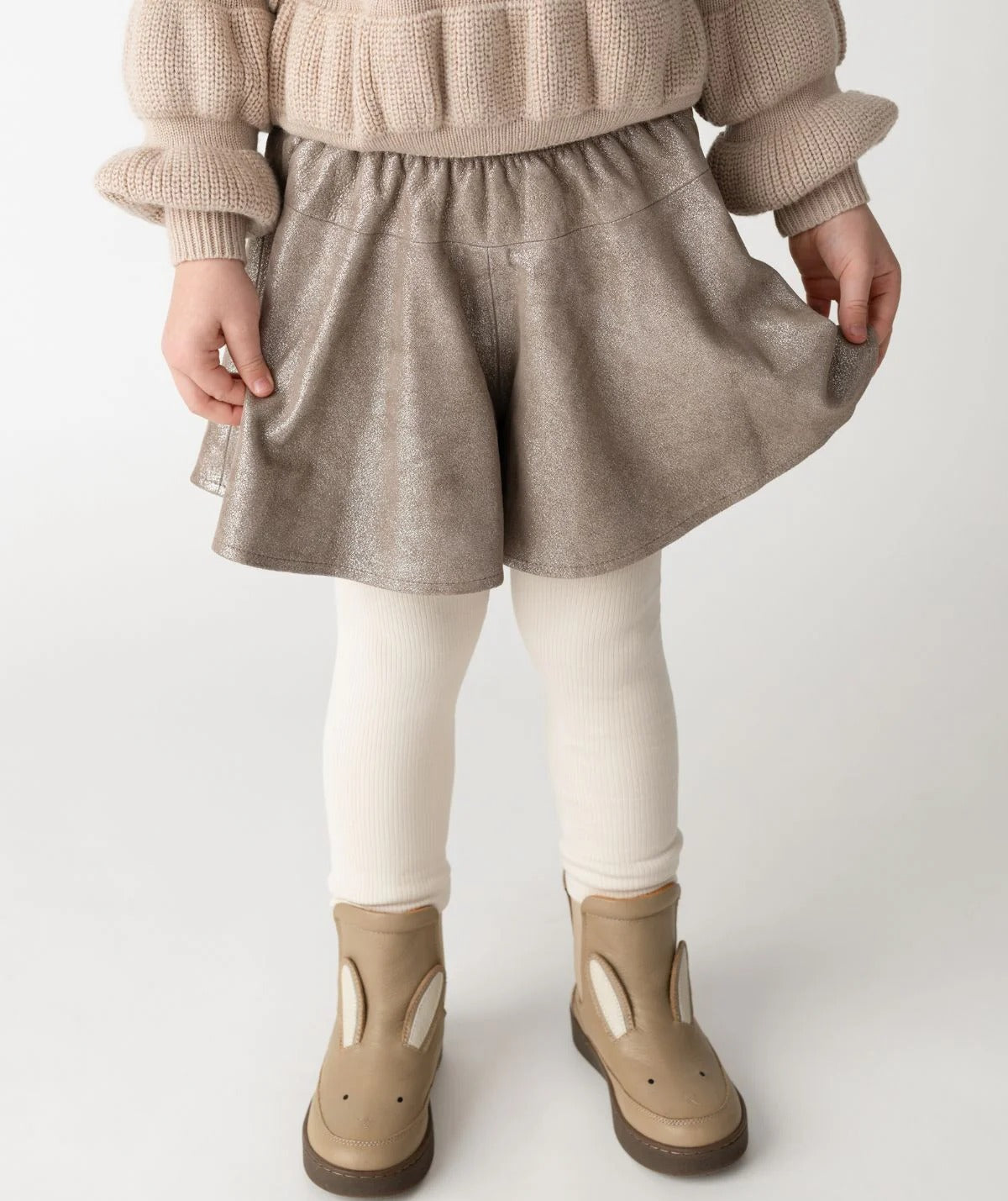 Δερμάτινο απαλό σορτς για παιδιά με ελαστική μέση σε υπέροχη μεταλλική απόχρωση.
