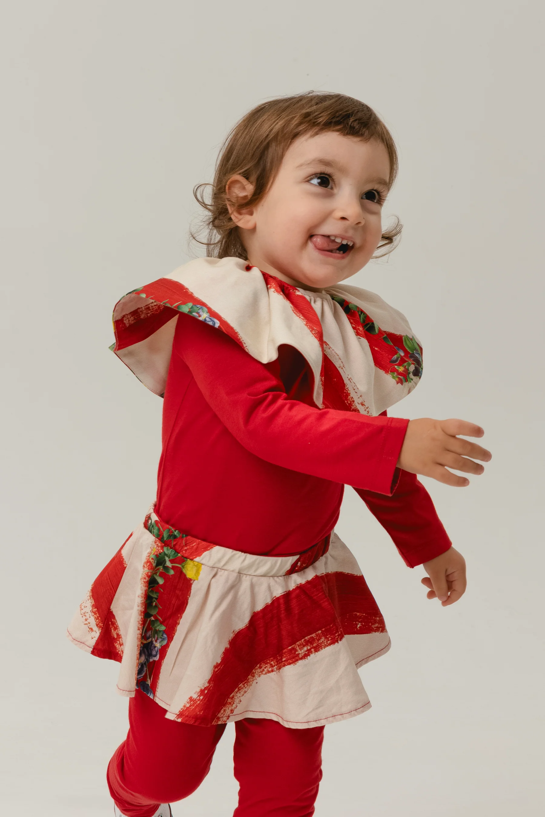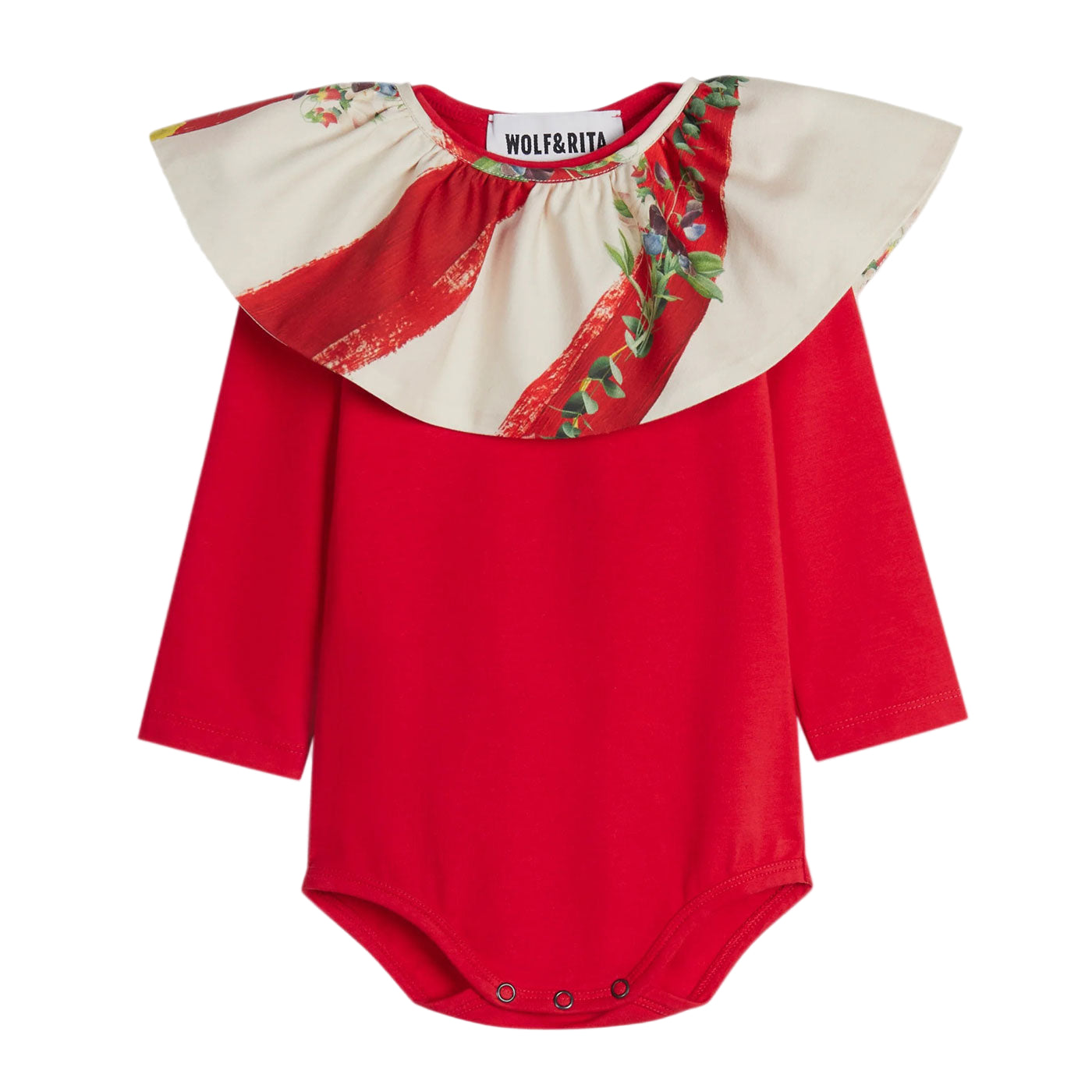 Μακρυμάνικο φορμάκι για μωρά με εντυπωσιακό γιακά και κλείσιμο με κουμπιά ανάμεσα στα πόδια.