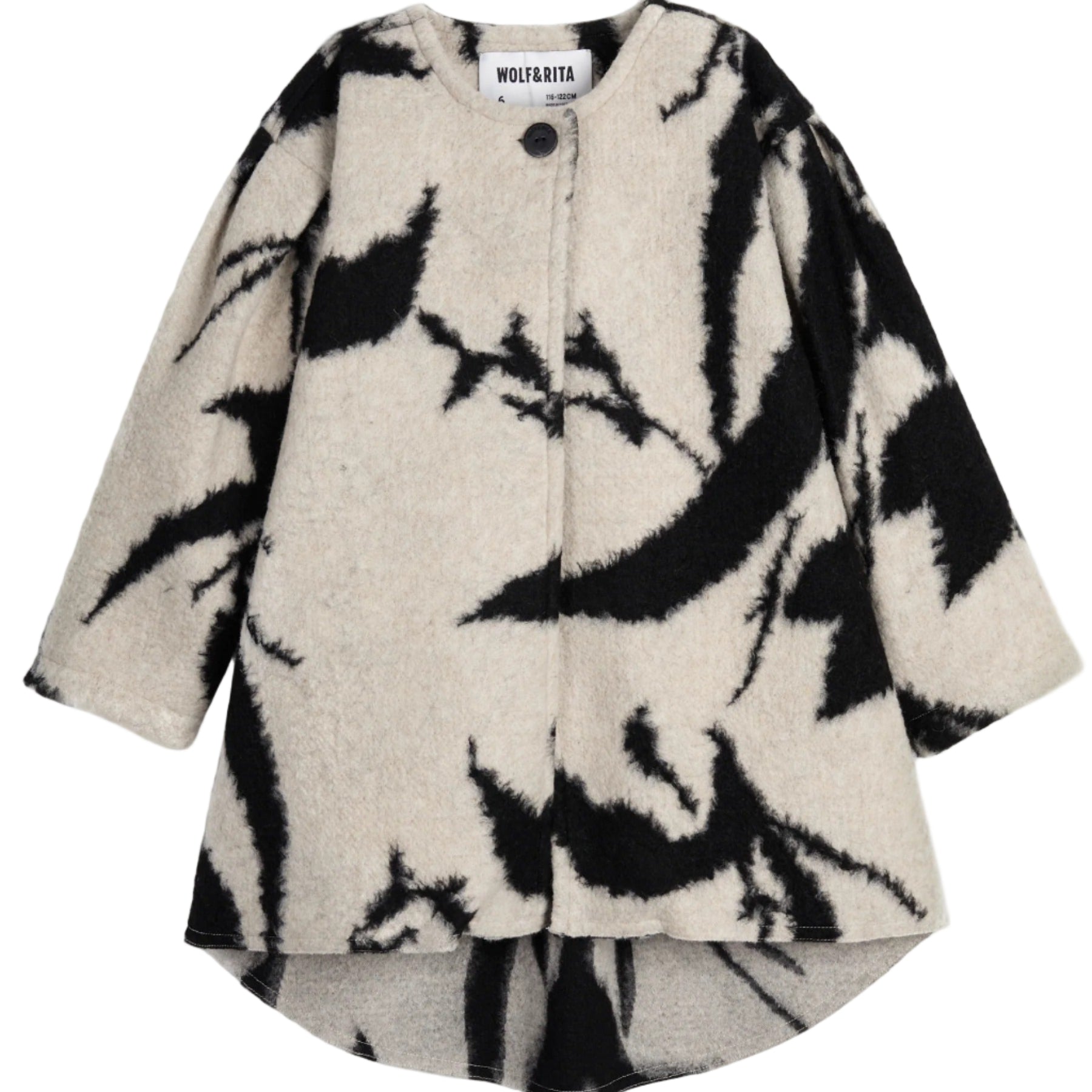 Παλτό για παιδιά με ασύμμετρο μήκος και κλείσιμο με κουμπί.
