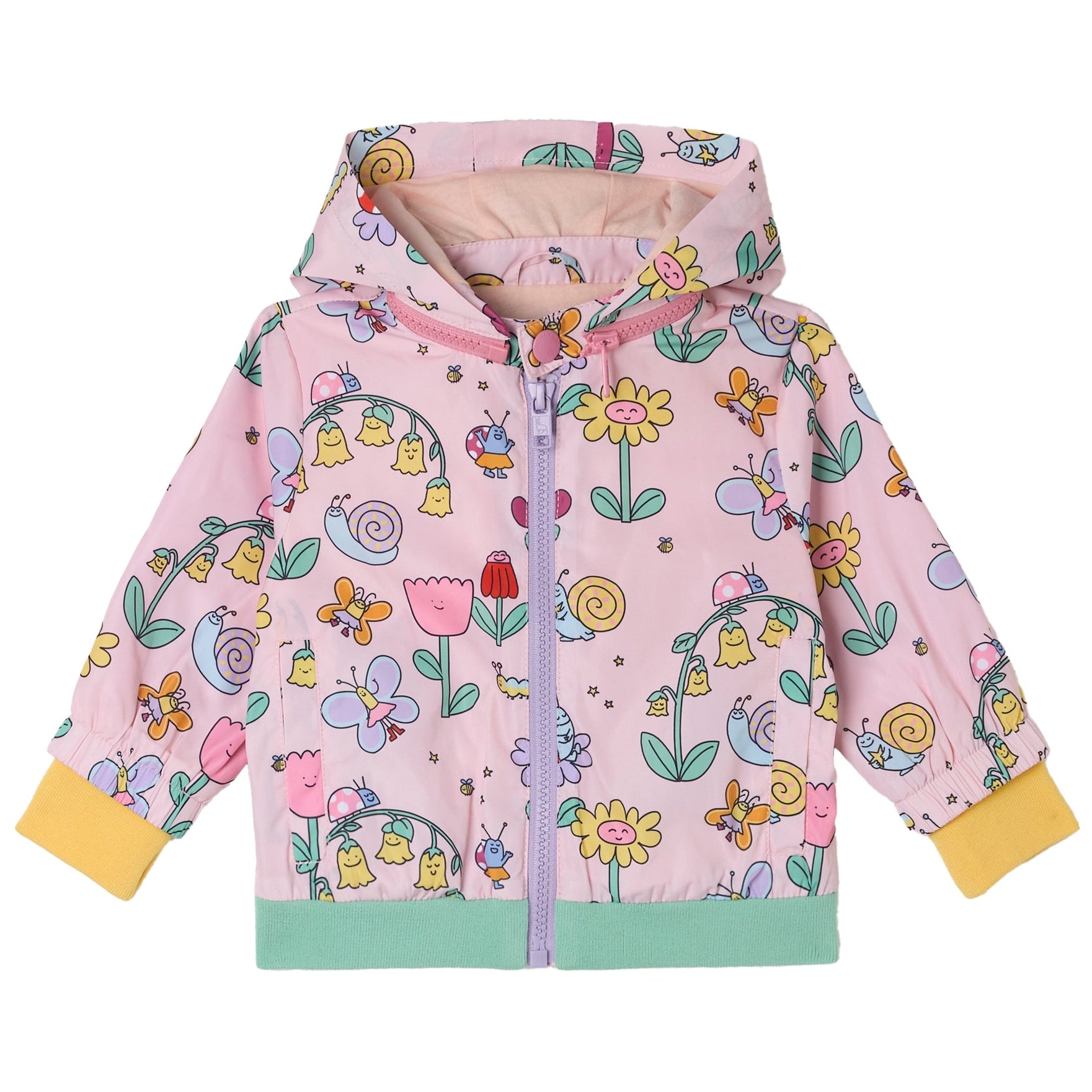 Ελαφρύ μπουφάν για μωρά με διασκεδαστικό σχέδιο σε όλη την επιφάνεια, κλείσιμο με φερμουάρ και αποσπώμενη κουκούλα.