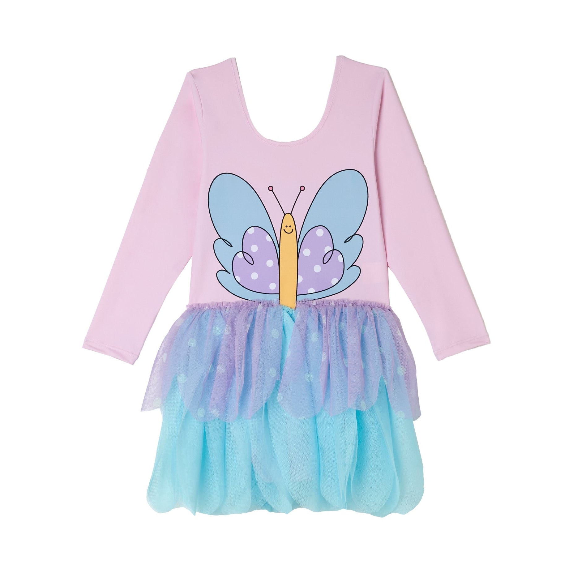 Μακρυμάνικο φόρεμα-κορμάκι για παιδιά ιδανικό για μπαλέτο με τούλινη φούστα και σχέδιο πεταλούδα στο μπροστινό μέρος.