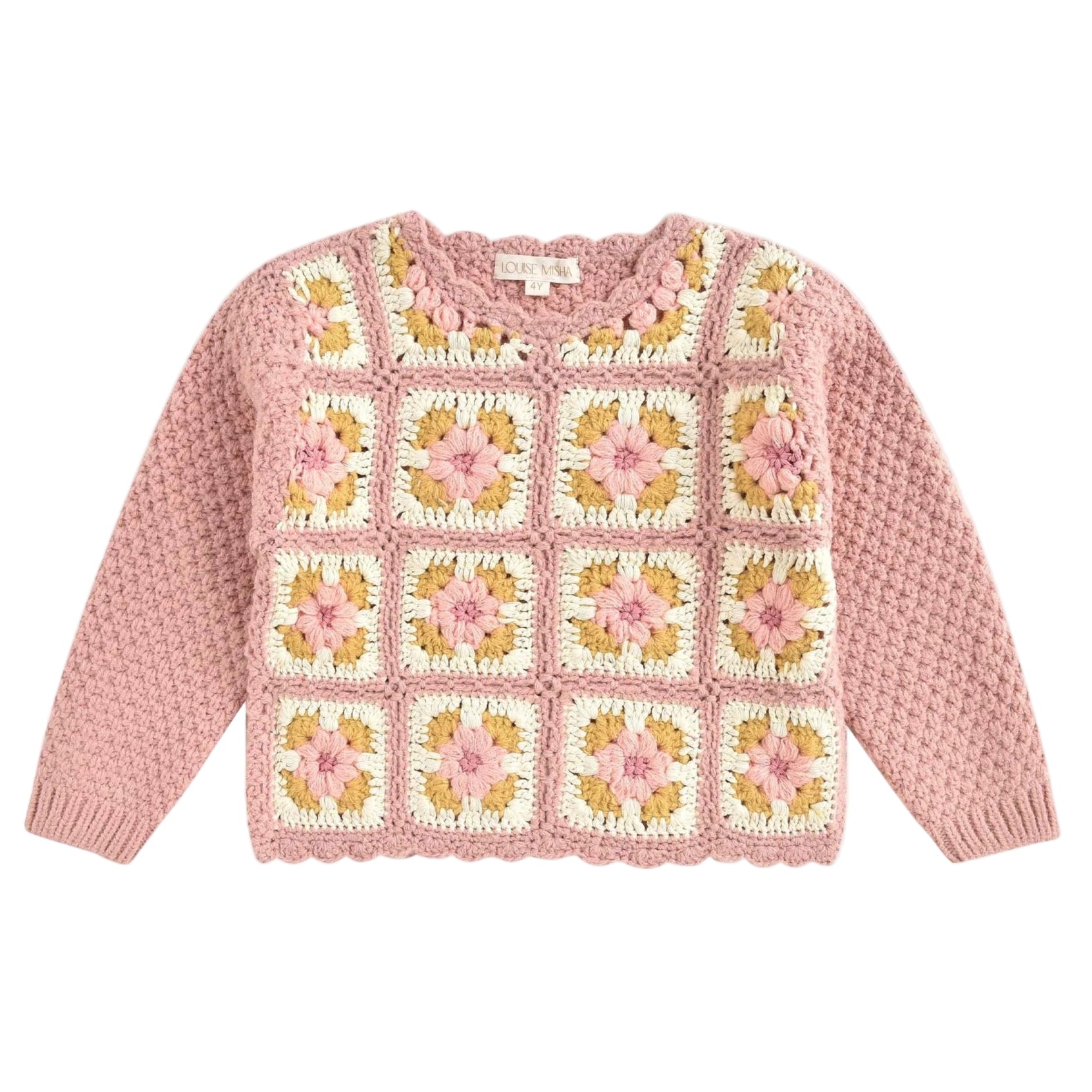 Πουλόβερ για παιδιά με πλεκτά χειροποίητα λουλούδια.
