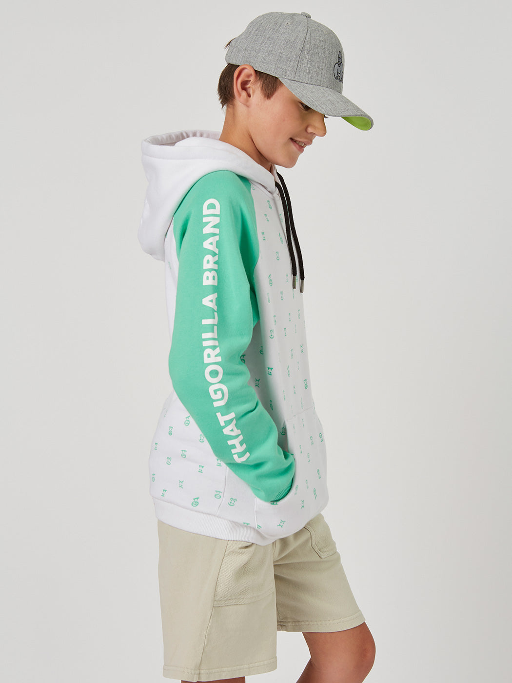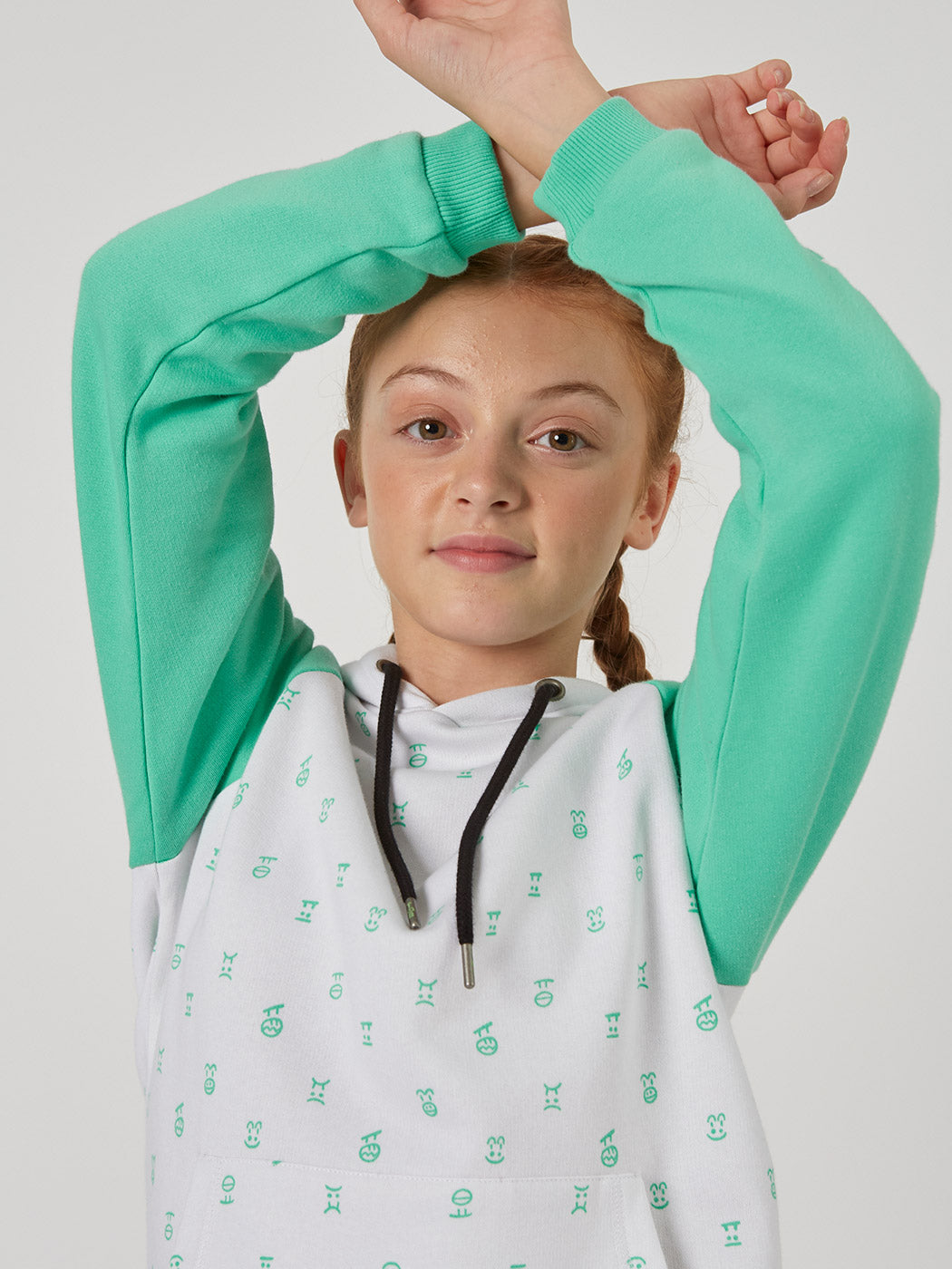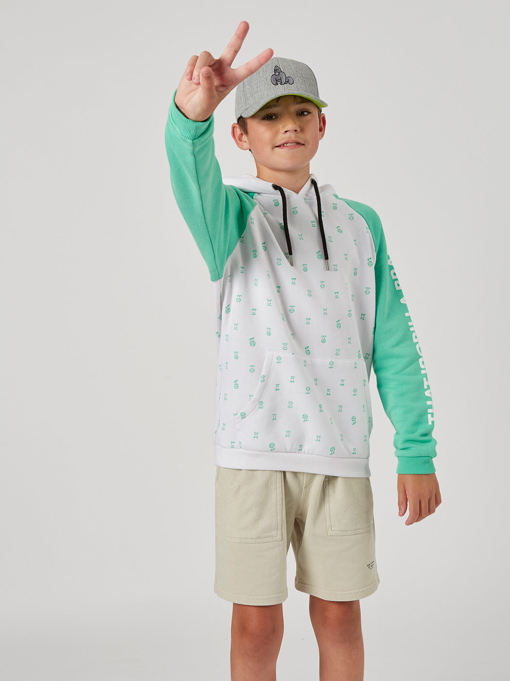 Φούτερ για παιδιά με κουκούλα και διασκεδαστικό σχέδιο σε όλη την επιφάνεια και τσέπη στο μπροστινό μέρος.
