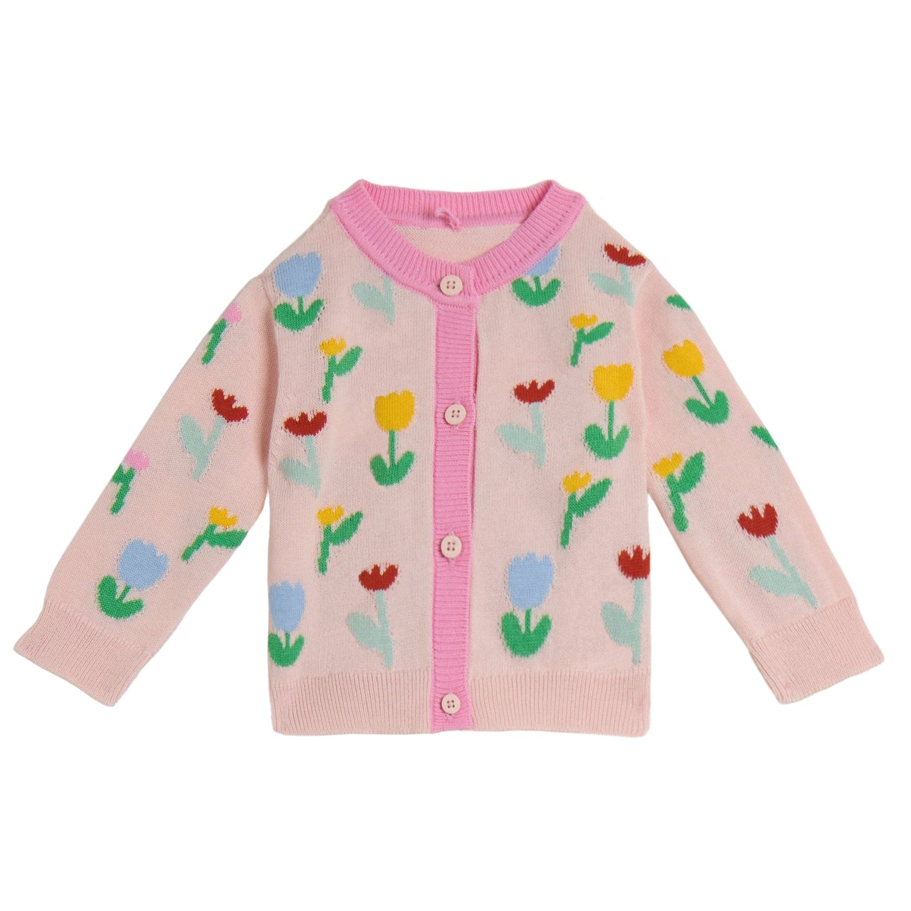 Πλεκτή βαμβακερή ζακέτα για μωρά με σχέδιο τουλίπες σε όλη την επιφάνεια.