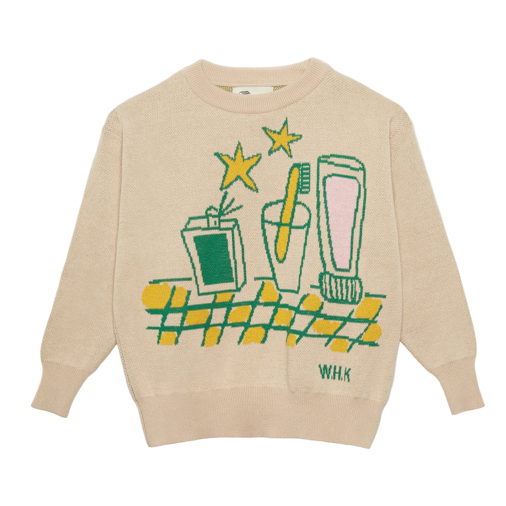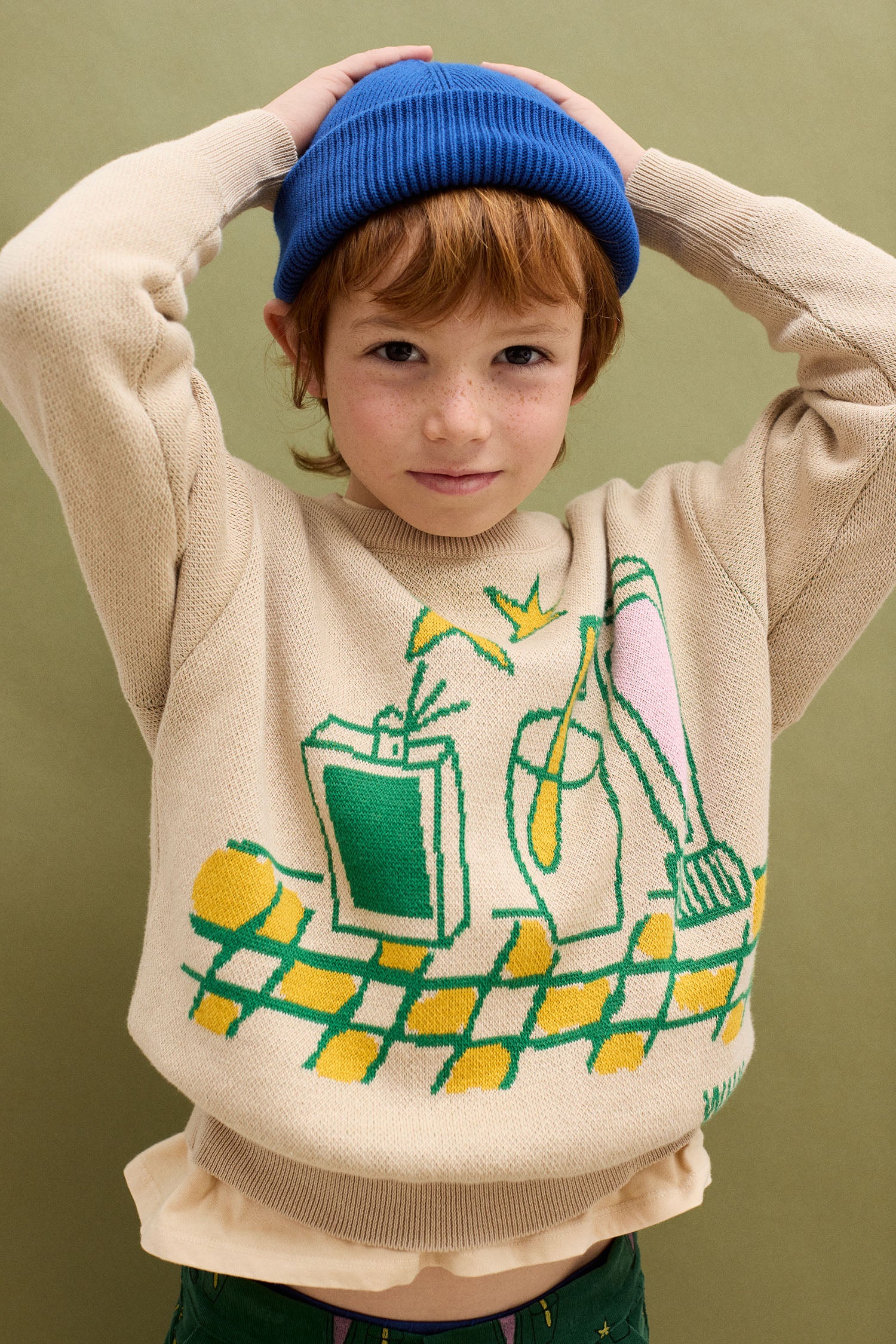 Πουλόβερ για παιδιά με διασκεδαστικό σχέδιο στο μπροστινό μέρος και στρογγυλή λαιμόκοψη.