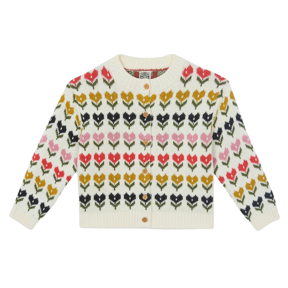 Πλεκτή ζακέτα για παιδιά με διασκεδαστικό σχέδιο σε όλη την επιφάνεια και κλείσιμο με κουμπιά.