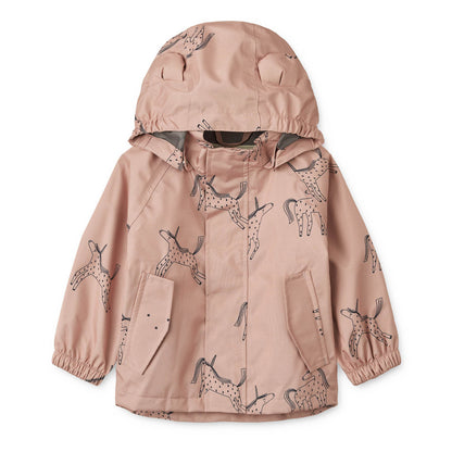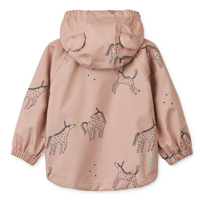 Αδιάβροχο για παιδιά, κατασκευασμένo από 100% ανακυκλωμένο πολυεστέρα. Το μπουφάν κλείνει με φερμουάρ και κουμπιά, διαθέτει τσέπες και αφαιρούμενη κουκούλα με αυτάκια.