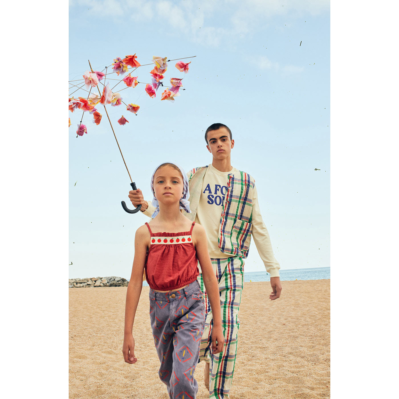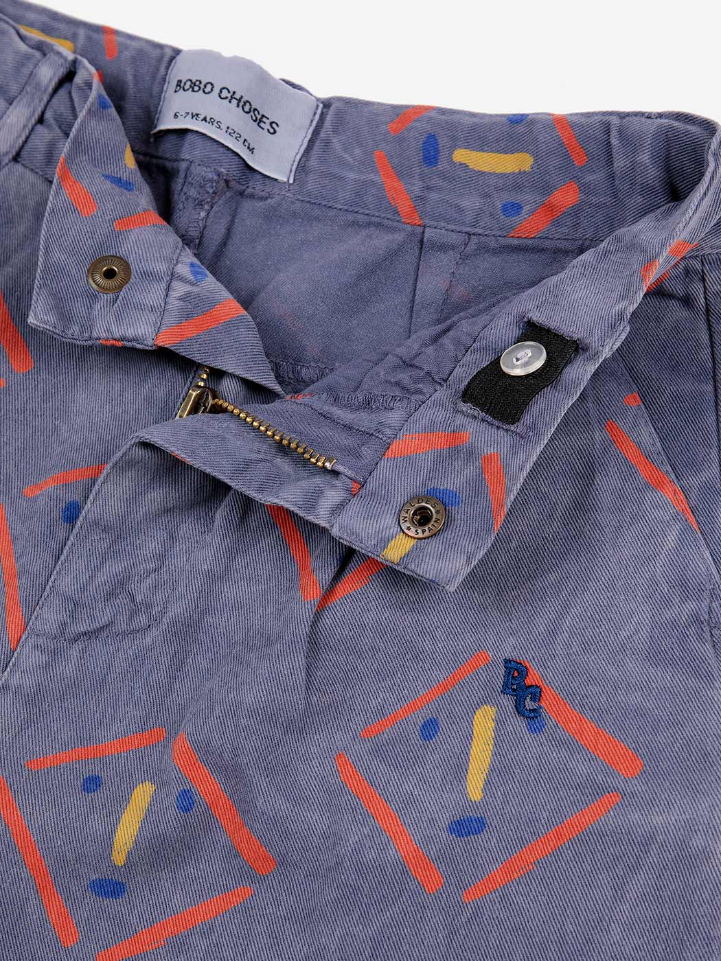 Παντελόνι για παιδιά με τύπωμα σε όλη την επιφάνειά του, πιέτες και κλείσιμο με κουμπί και φερμουάρ.