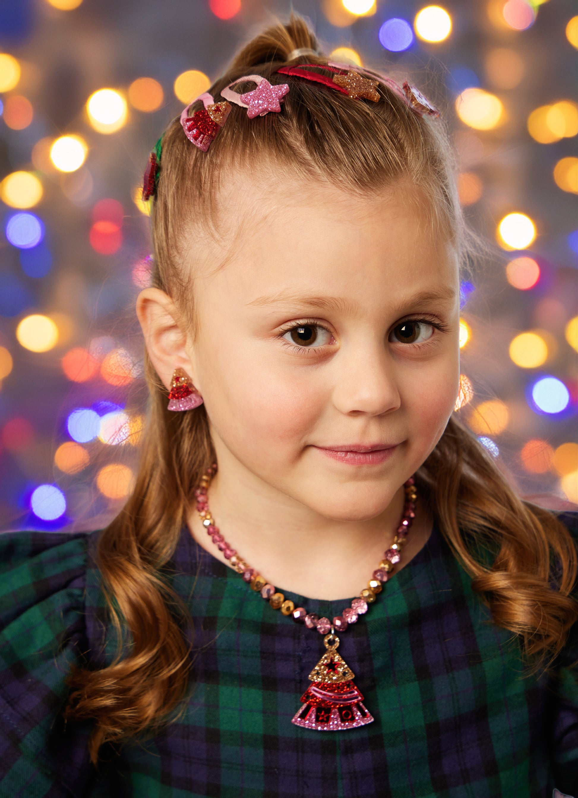 Σκουλαρίκια με κλιπ για παιδιά με σχέδιο χριστουγεννιάτικο δέντρο.