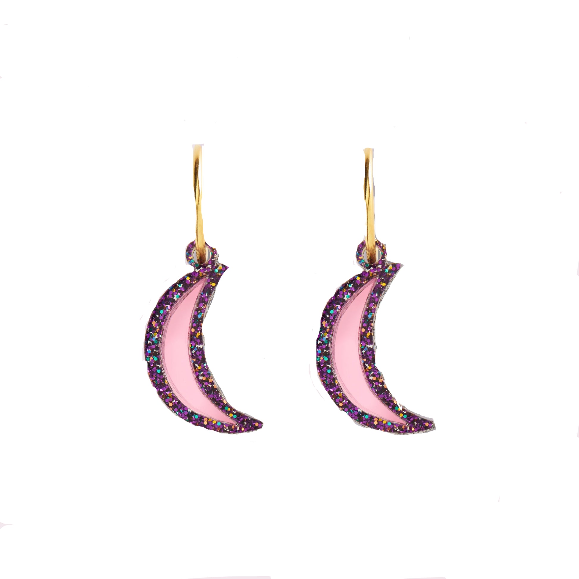 Σκουλαρίκια για παιδιά με σχέδιο φεγγάρι περασμένο σε χρυσά επάργυρα κρικάκια.