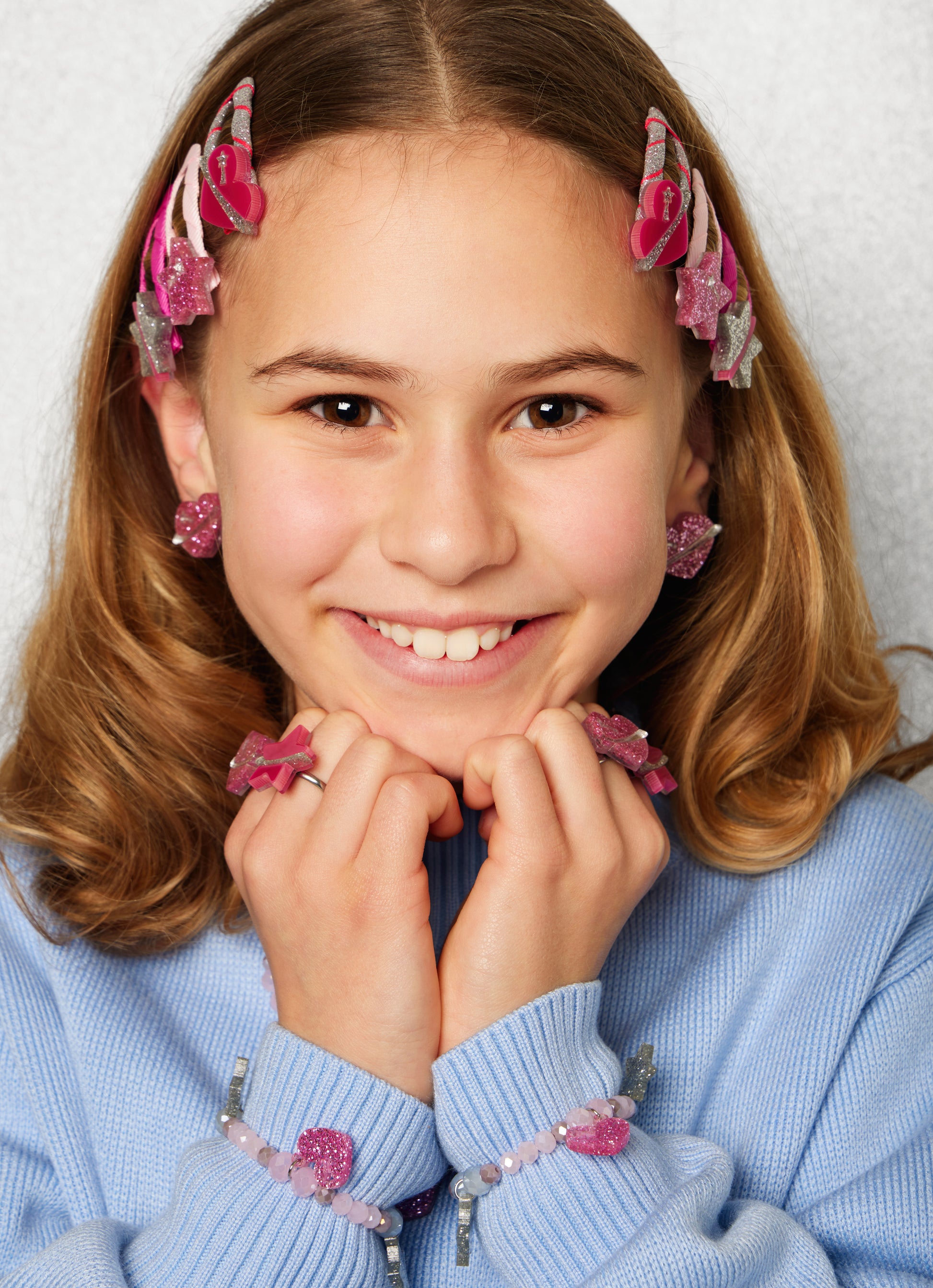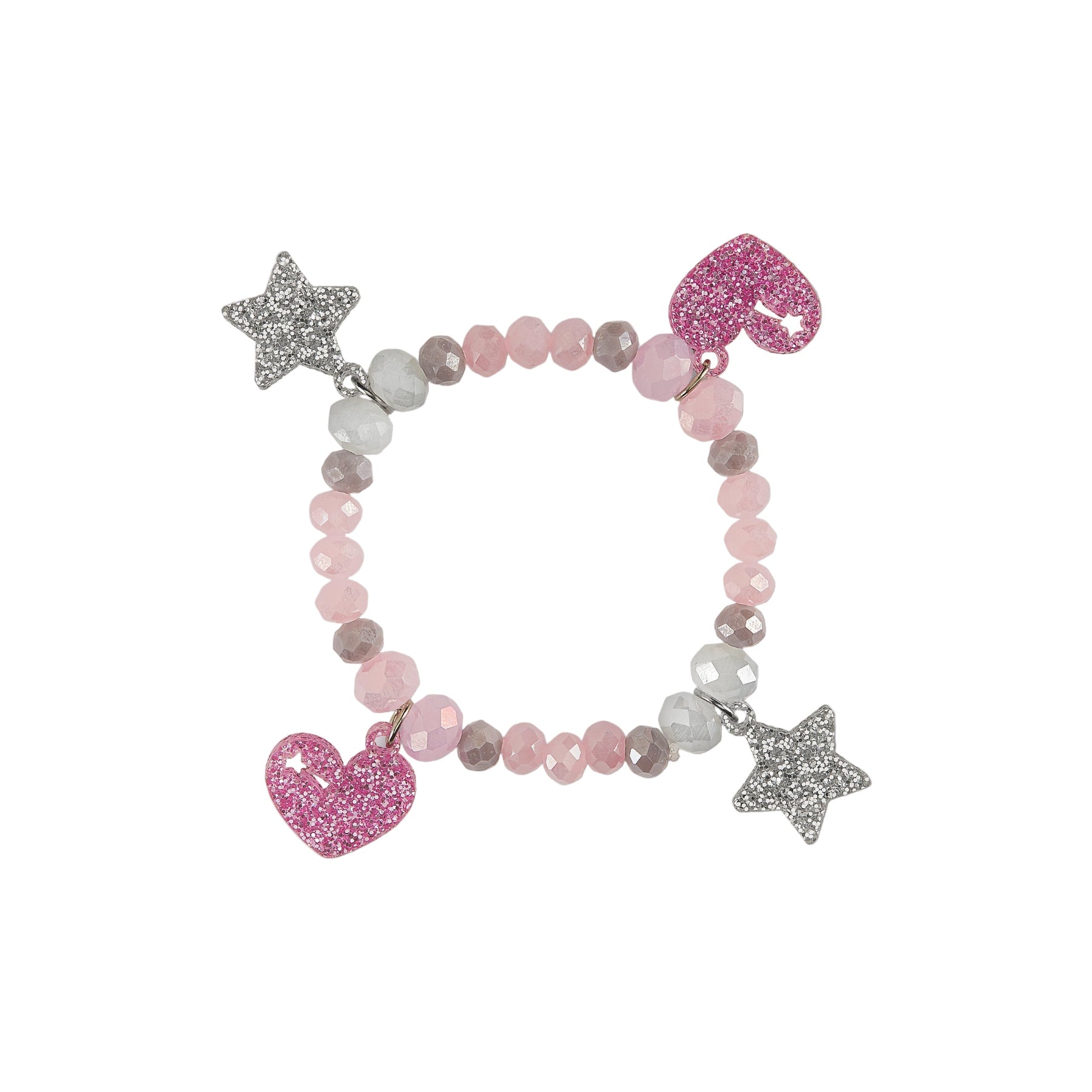 Ελαστικό βραχιόλι με πολύχρωμες πέτρες και διακοσμητικά αστέρια και καρδιές, για λαμπερά κορίτσια.