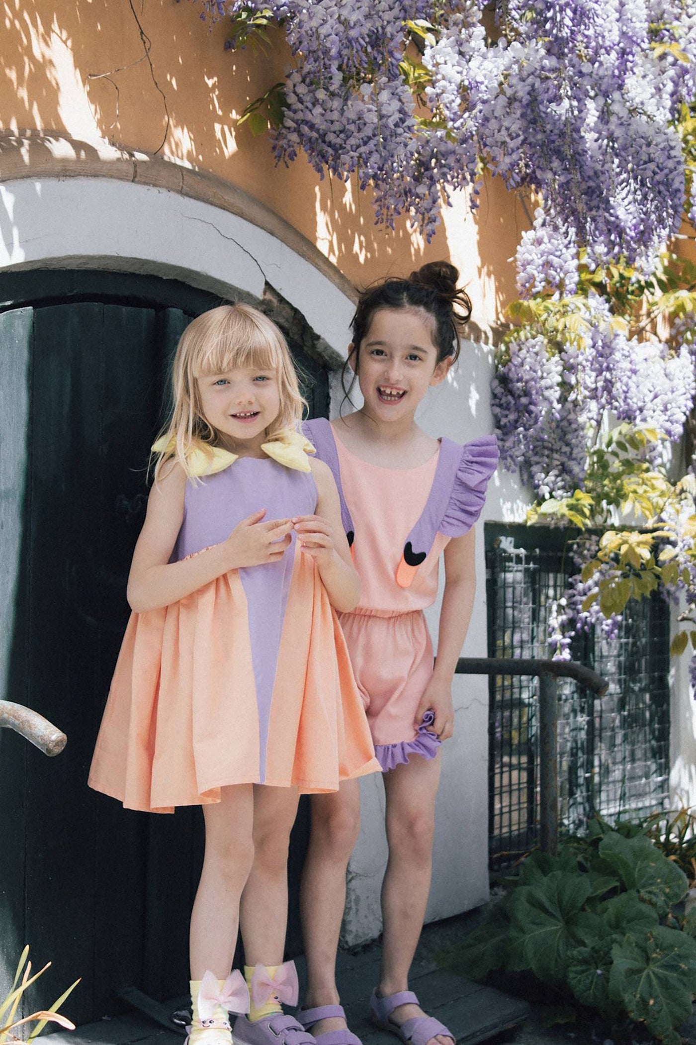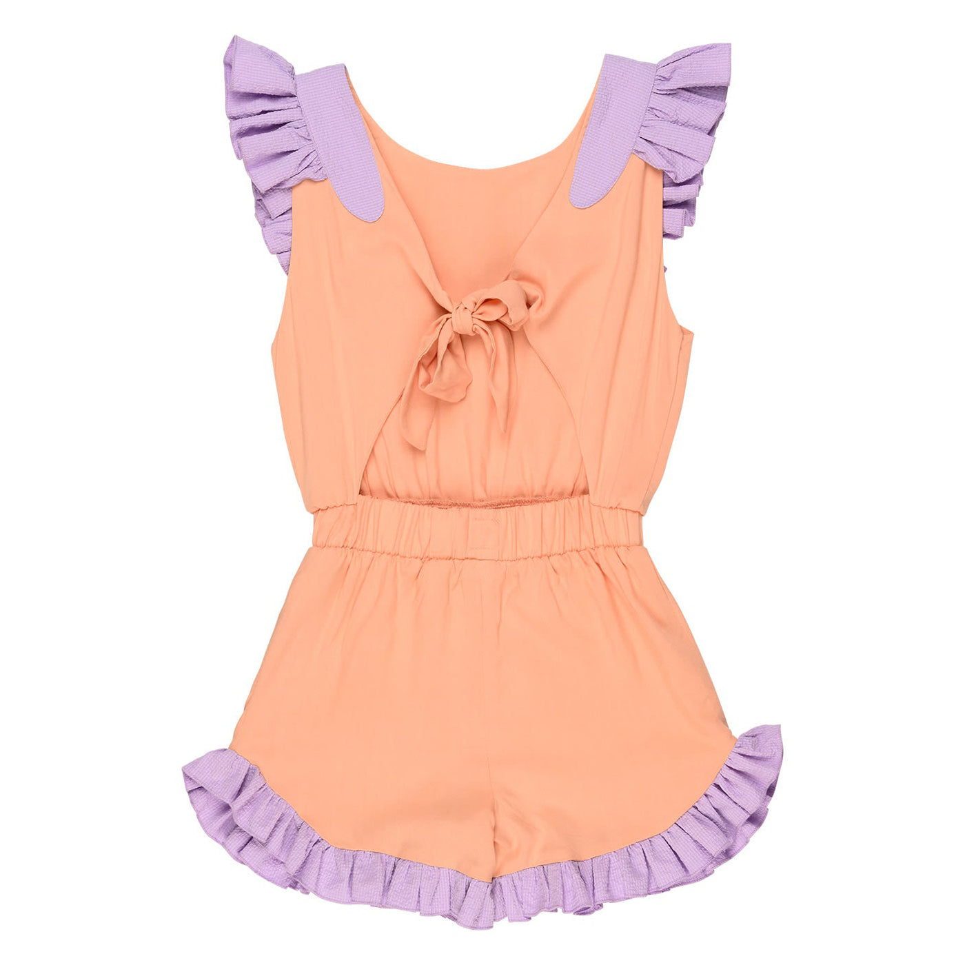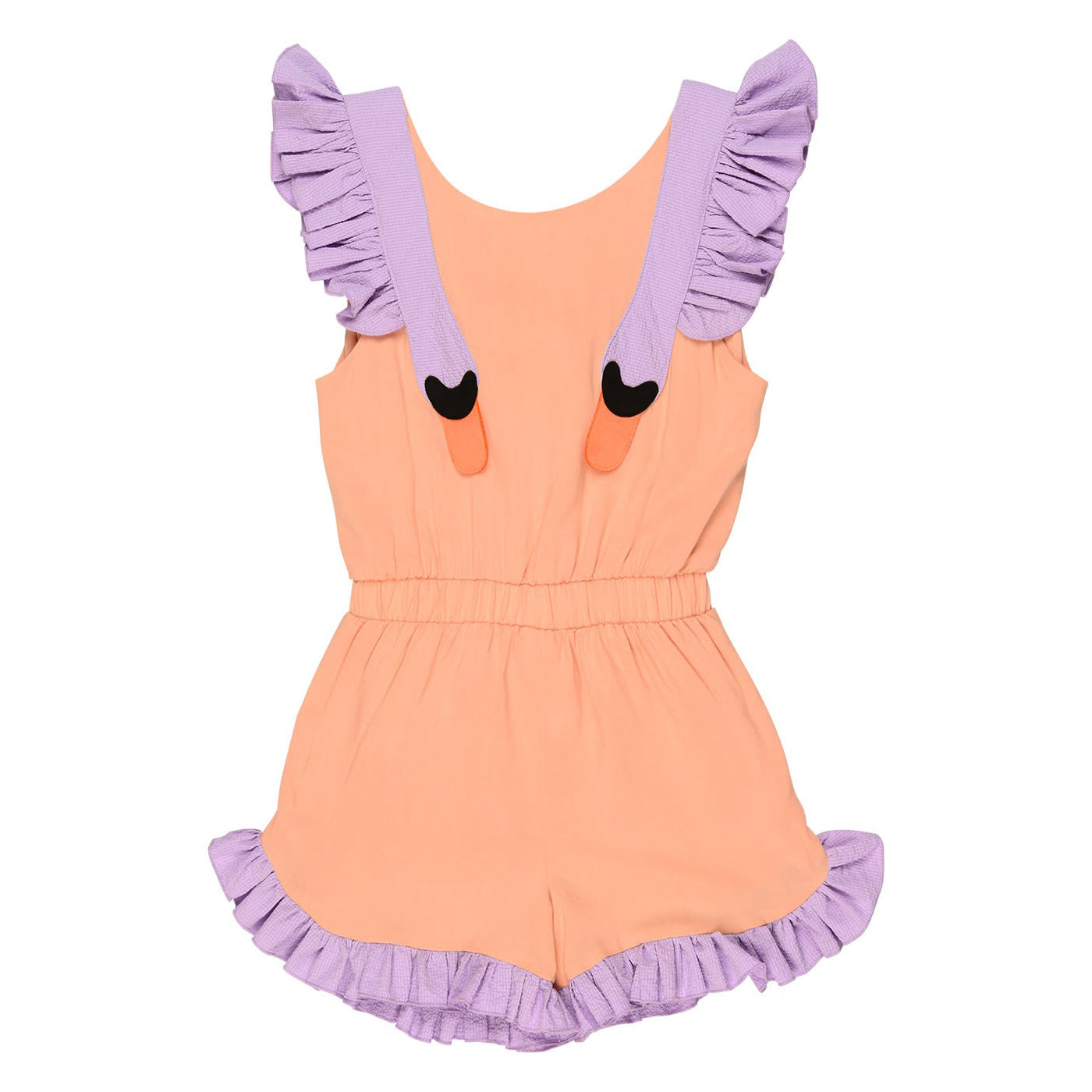 Ολόσωμη φόρμα για παιδιά με κύκνους. Διαθέτει ανοιχτή πλάτη με δέσιμο και φρου-φρου στο σορτς και στους ώμους. Ελαστική μέση για τέλεια εφαρμογή.