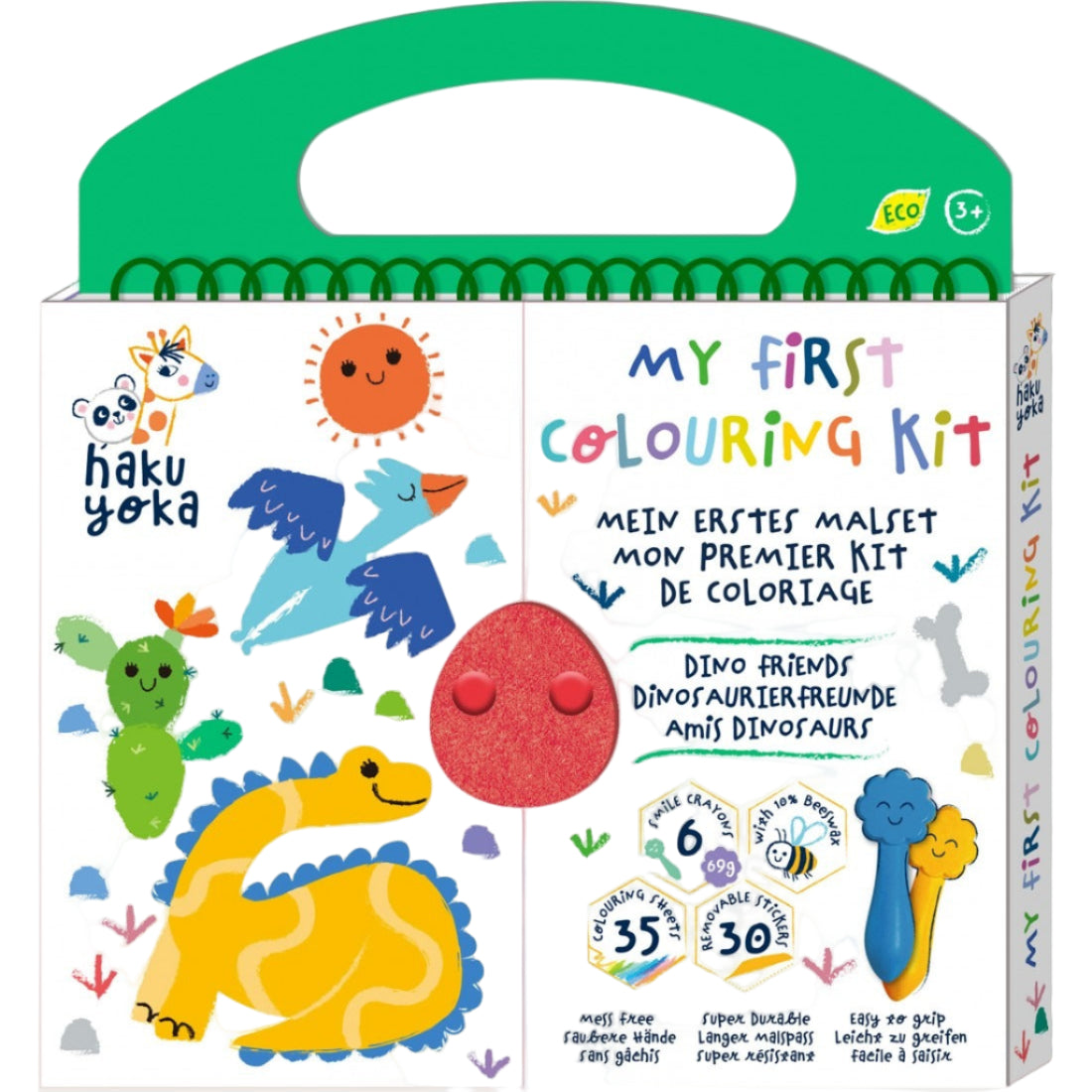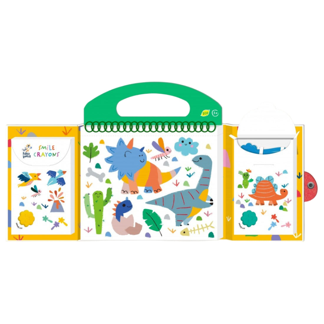 Αποτελείται από 35 φύλλα ζωγραφικής γεμάτα δεινόσαυρους και 6 ‘χαρούμενες’ κηρομπογιές για ατελείωτες ώρες διασκέδασης και δημιουργίας.