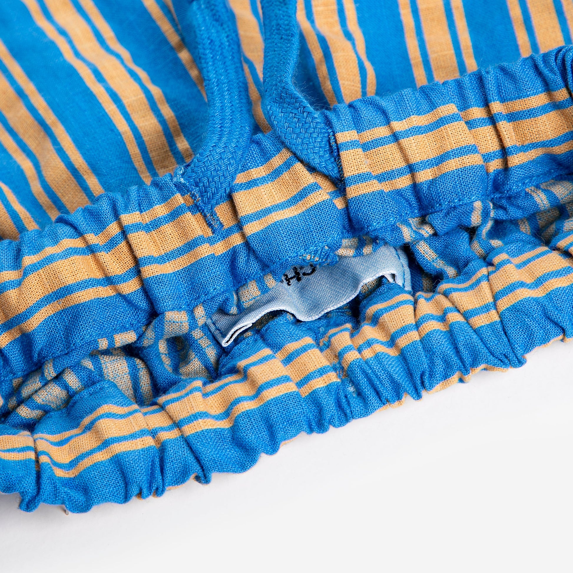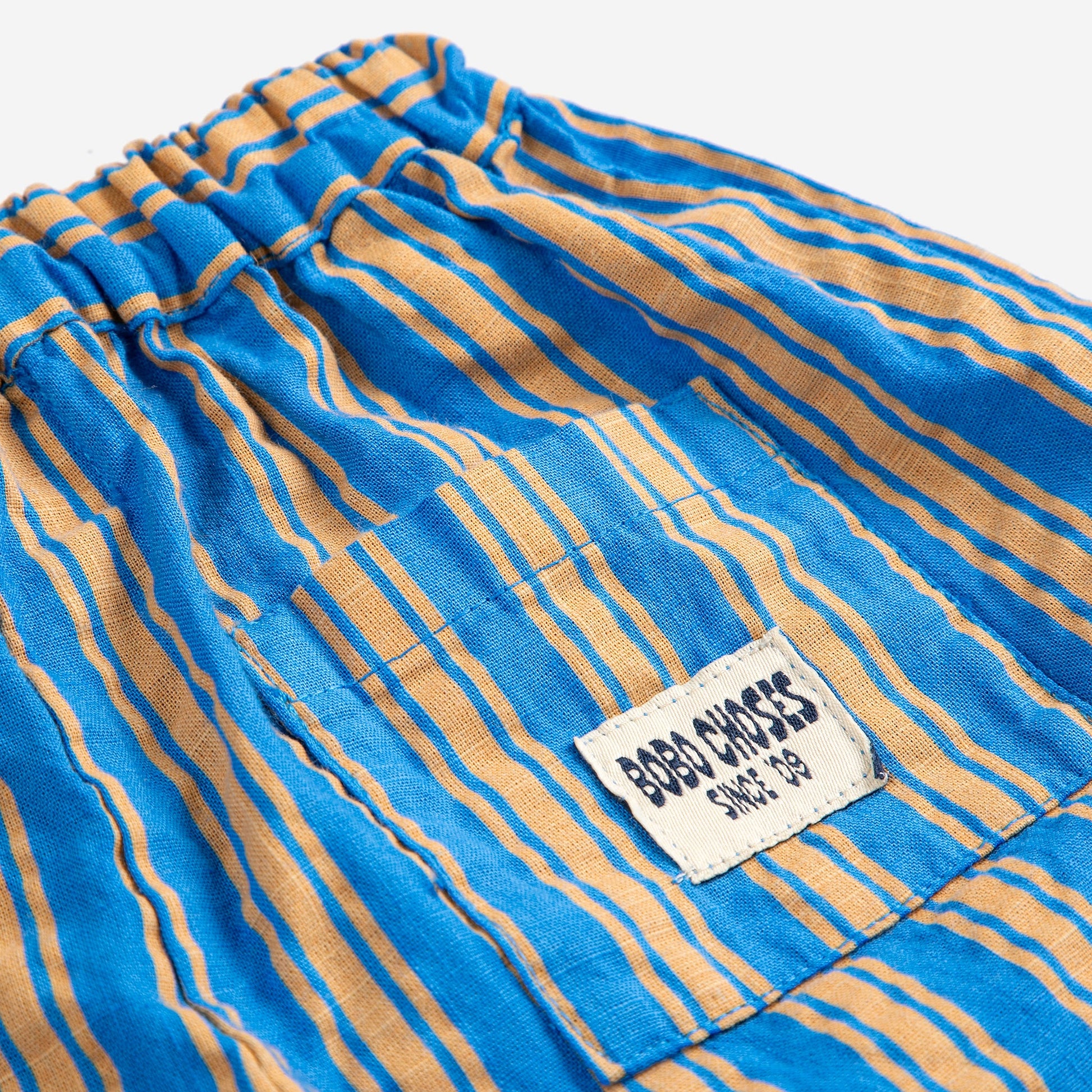 Παντελόνι για παιδιά με χρωματιστές ρίγες σε όλη την επιφάνεια και ελαστική μέση με κορδόνι εσωτερικά.