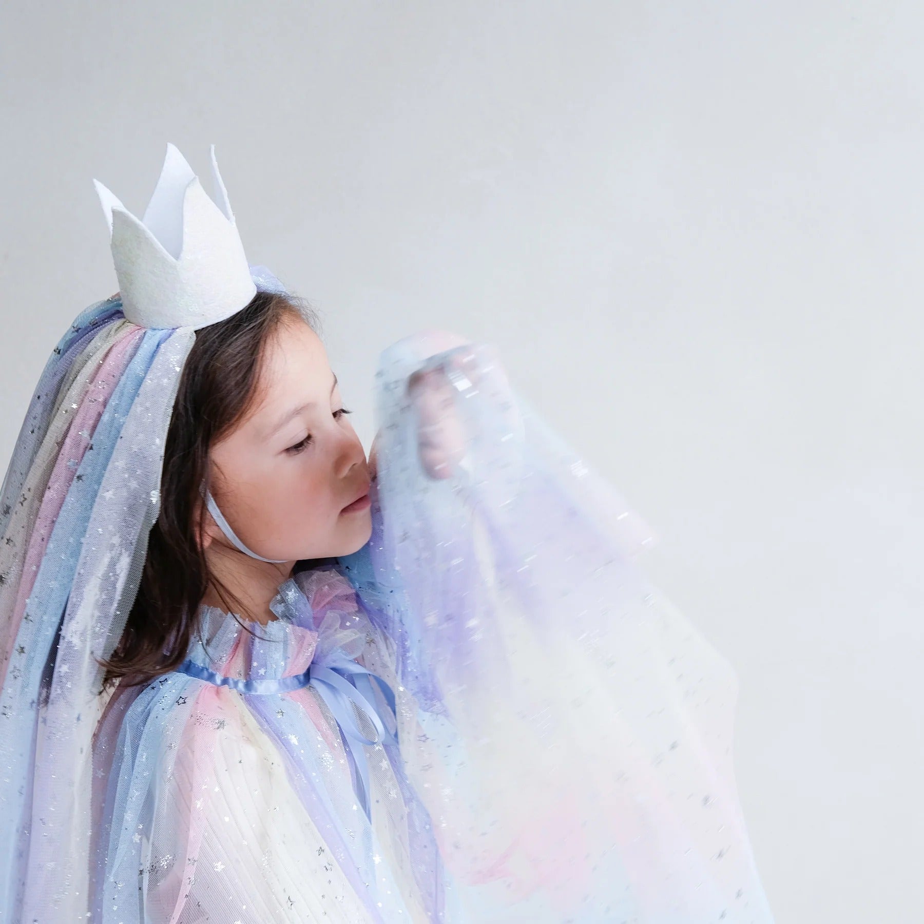 Αυτό το πολύ όμορφο ombre στέμμα στα χρώματα του ουράνιου τόξου είναι βέβαιο ότι θα έχει μεγάλη επιτυχία στις μικρές πριγκίπισσες! Μια σούπερ ονειρική προσθήκη στο ντύσιμό τους, ιδανική και για γενέθλια και πάρτι! Συνδυάστε το με την ombre κάπα για μια εντυπωσιακά πολύχρωμη εμφάνιση ουράνιου τόξου!