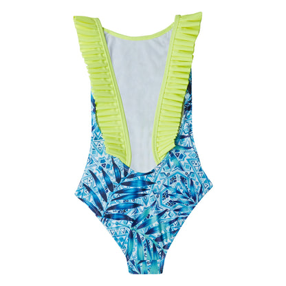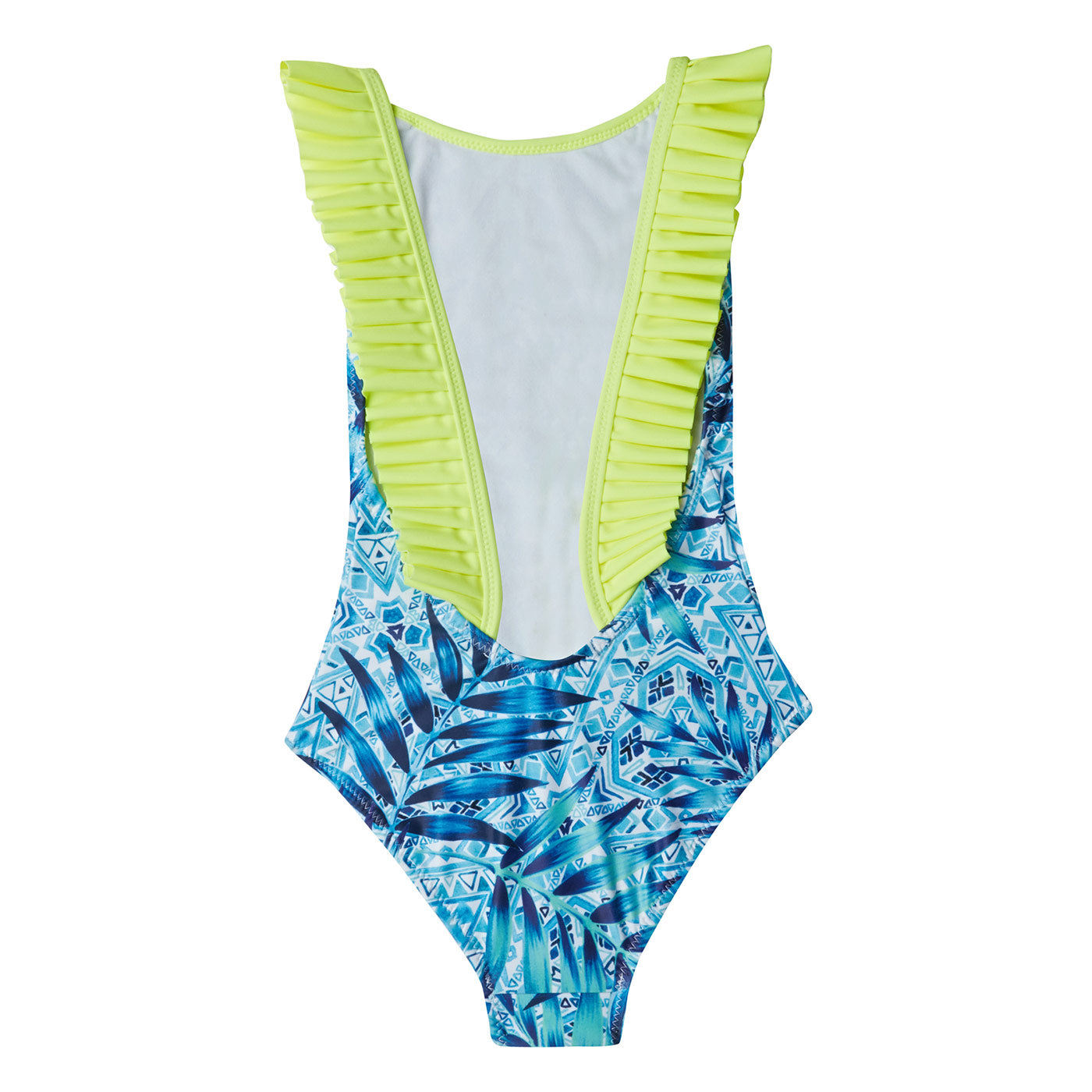 Ολόσωμο μαγιώ για παιδιά με ethnic τύπωμα, τιράντες με φρου-φρου και ανοιχτή πλάτη. Με δείκτη προστασίας, για ασφαλές παιχνίδι δίπλα στη θάλασσα!