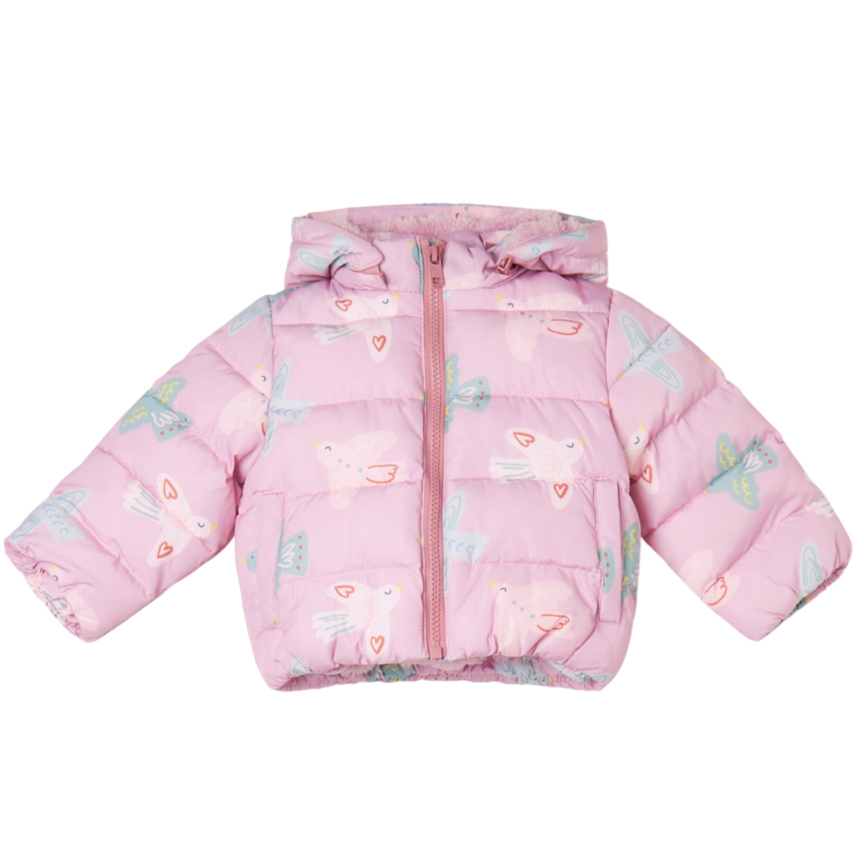 Μπουφάν για μωρά με διασκεδαστικό σχέδιο σε όλη την επιφάνεια, κουκούλα και επένδυση φλις.