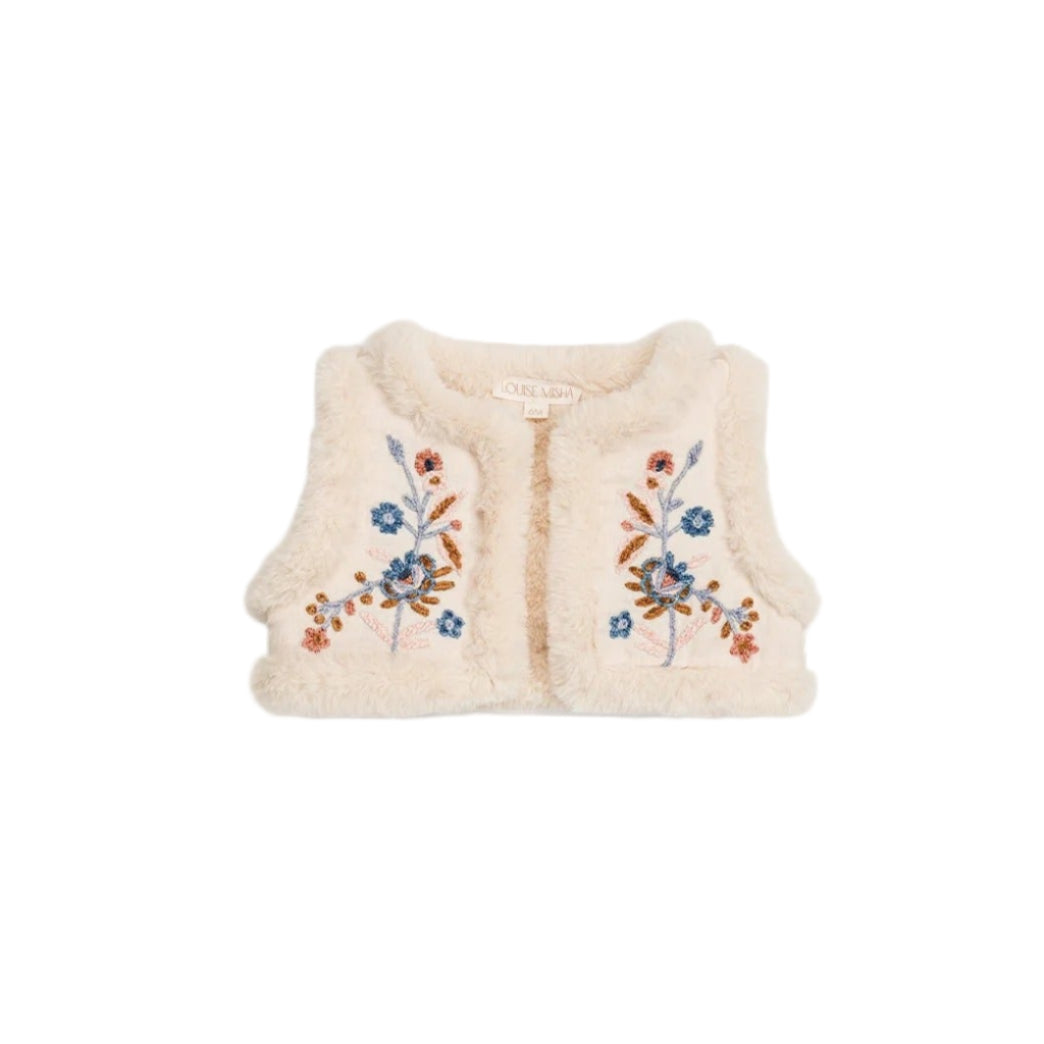 Γιλέκο διπλής όψης για μωρά με κεντήματα και γούνινη όψη για έξτρα ζεστασιά.