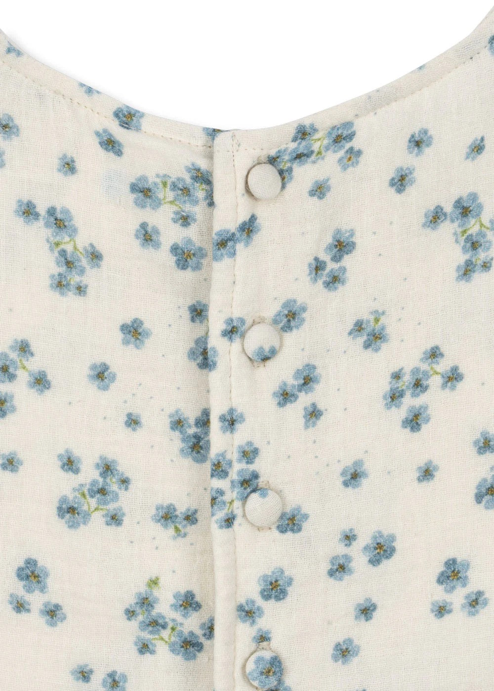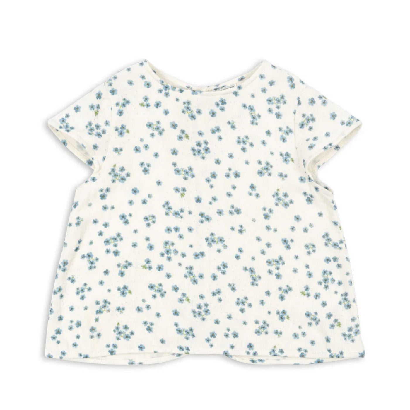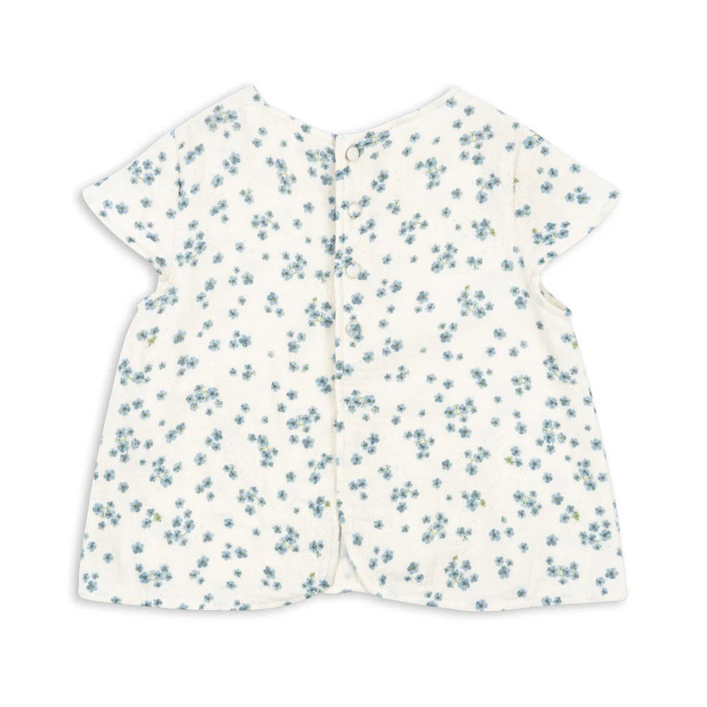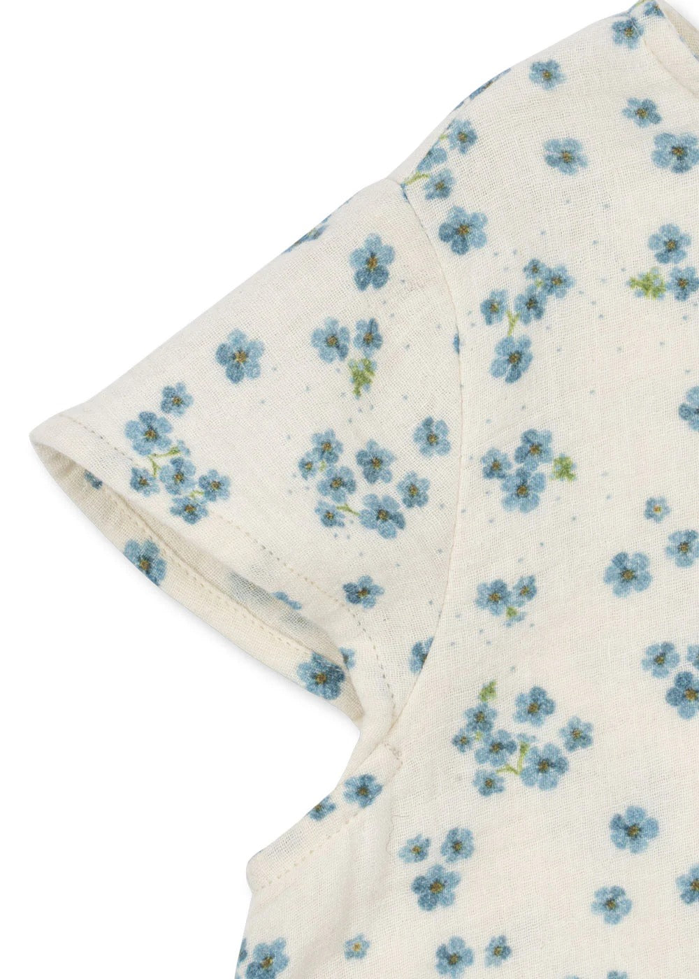 Κοντομάνικη βαμβακερή μπλούζα για παιδιά από τη συλλογή RHW x Konges Sløjd. Διαθέτει ένα πολύ όμορφο τύπωμα σε όλη την επιφάνεια από το λουλούδι "Forget Me Not". Κλείσιμο με κουμπιά στο πίσω μέρος .
