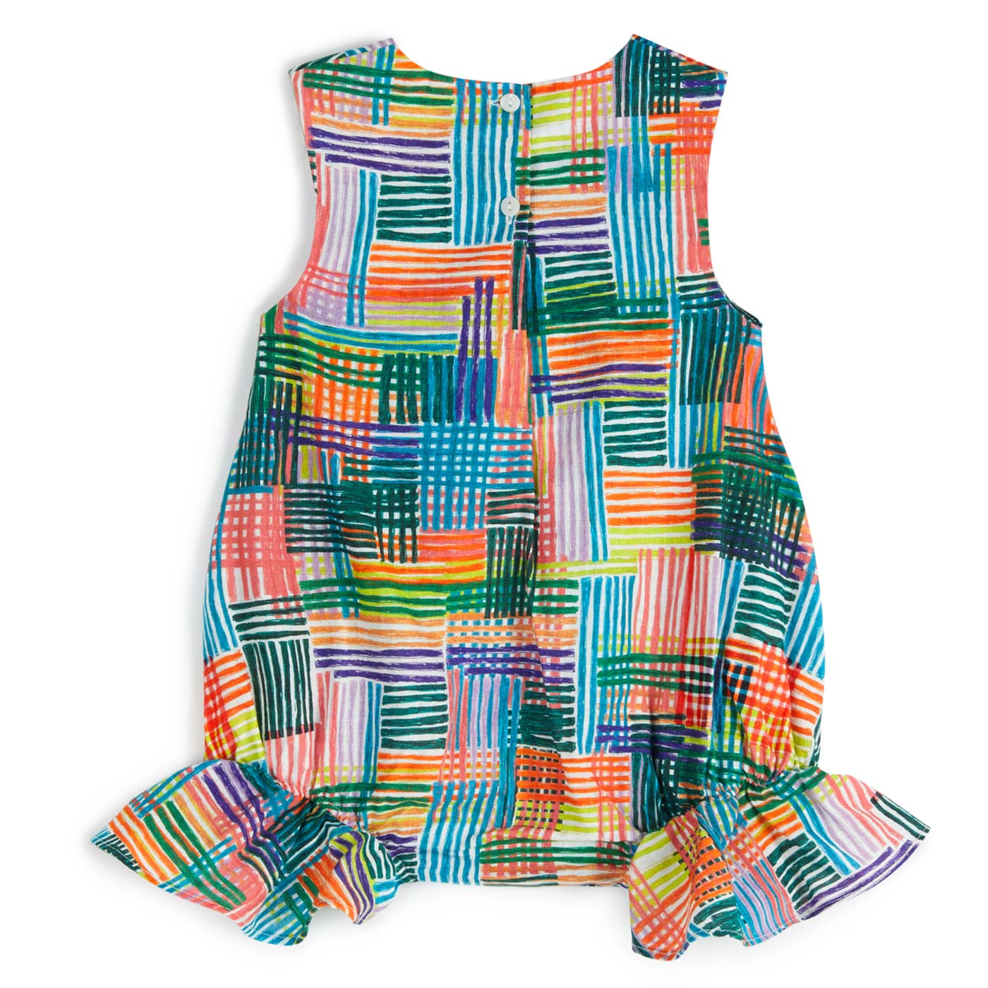Φορμάκι για μωρά με τύπωμα, φρου-φρου στα πόδια και κουμπάκια στο πίσω μέρος. Διαθέτει κλιπς ανάμεσα στα πόδια.