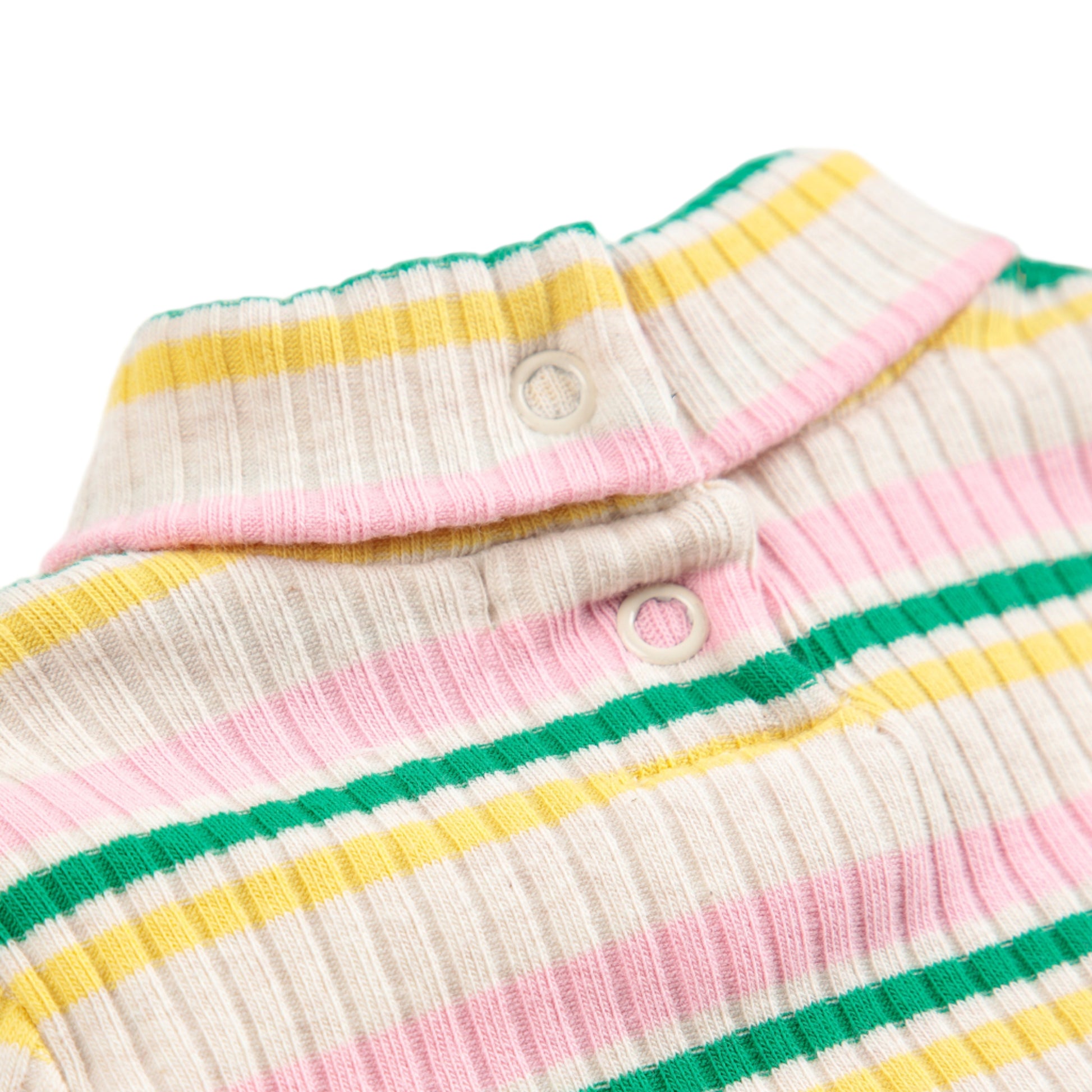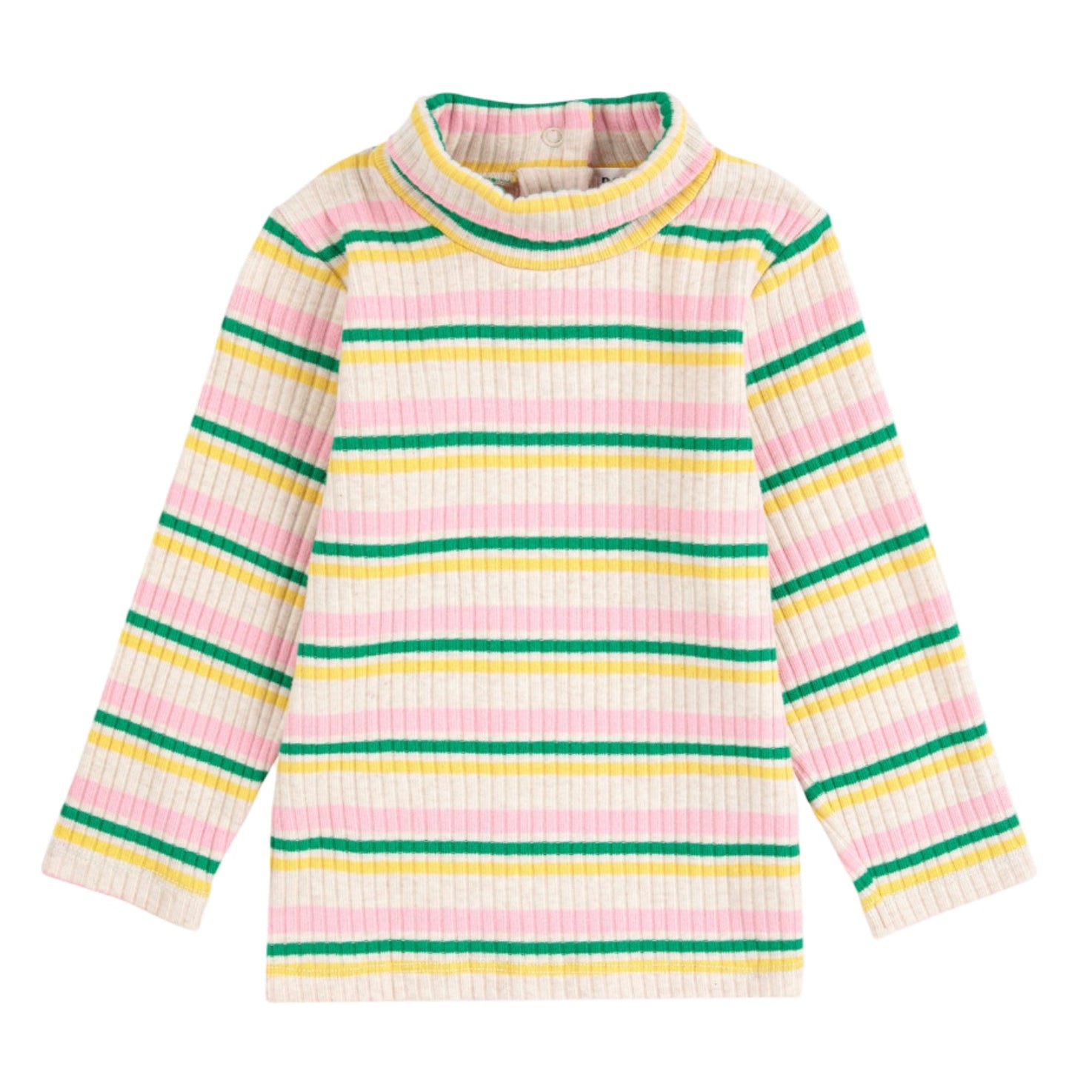 Μακρυμάνικη μπλούζα για μωρά με ρίγες σε όλη την επιφάνεια, ψηλό λαιμό και κλείσιμο με κουμπιά στο πίσω μέρος.