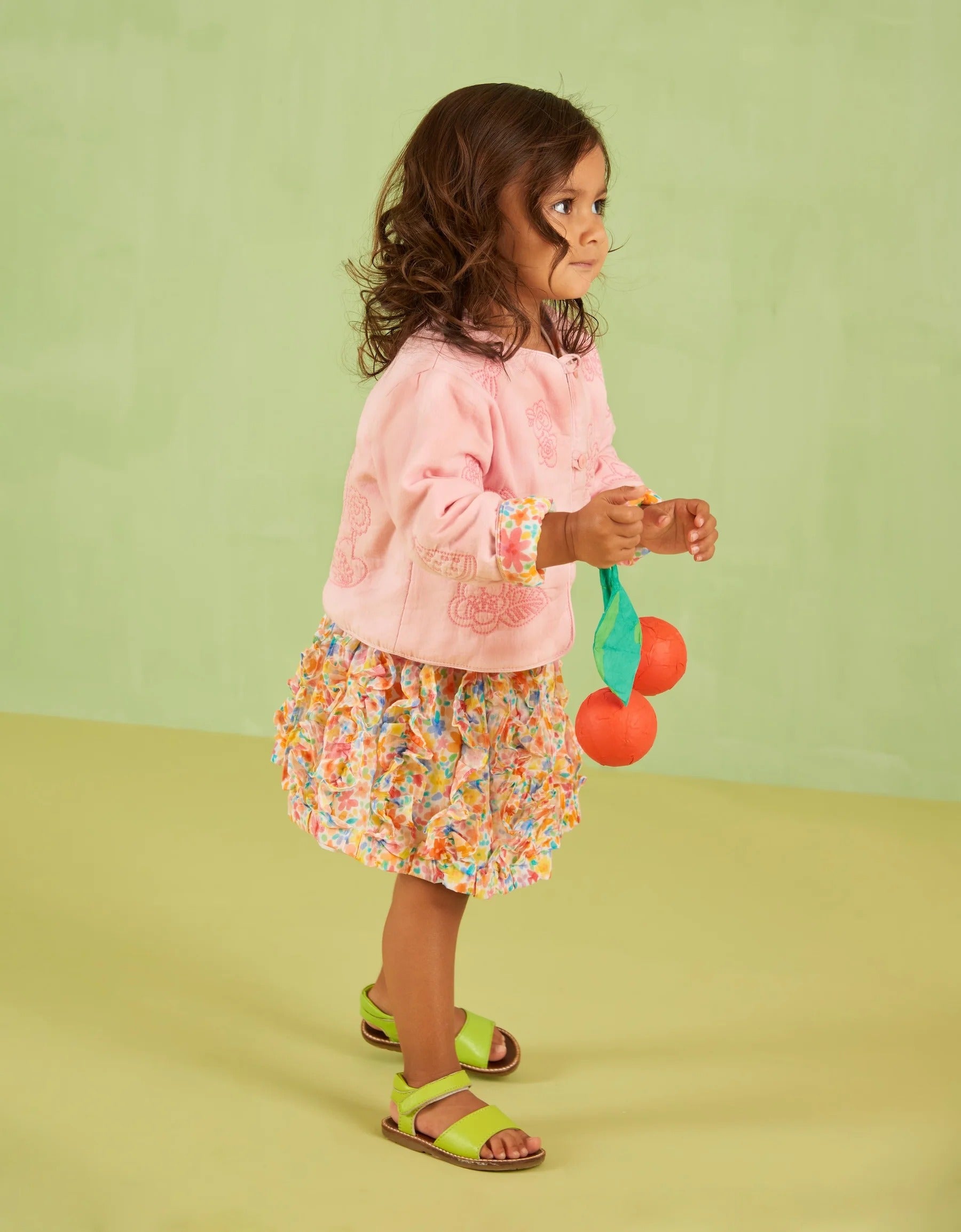 Φούστα για παιδιά με όμορφο φλοράλ σχέδιο σε όλη την επιφάνεια, βολάν και ελαστική μέση.