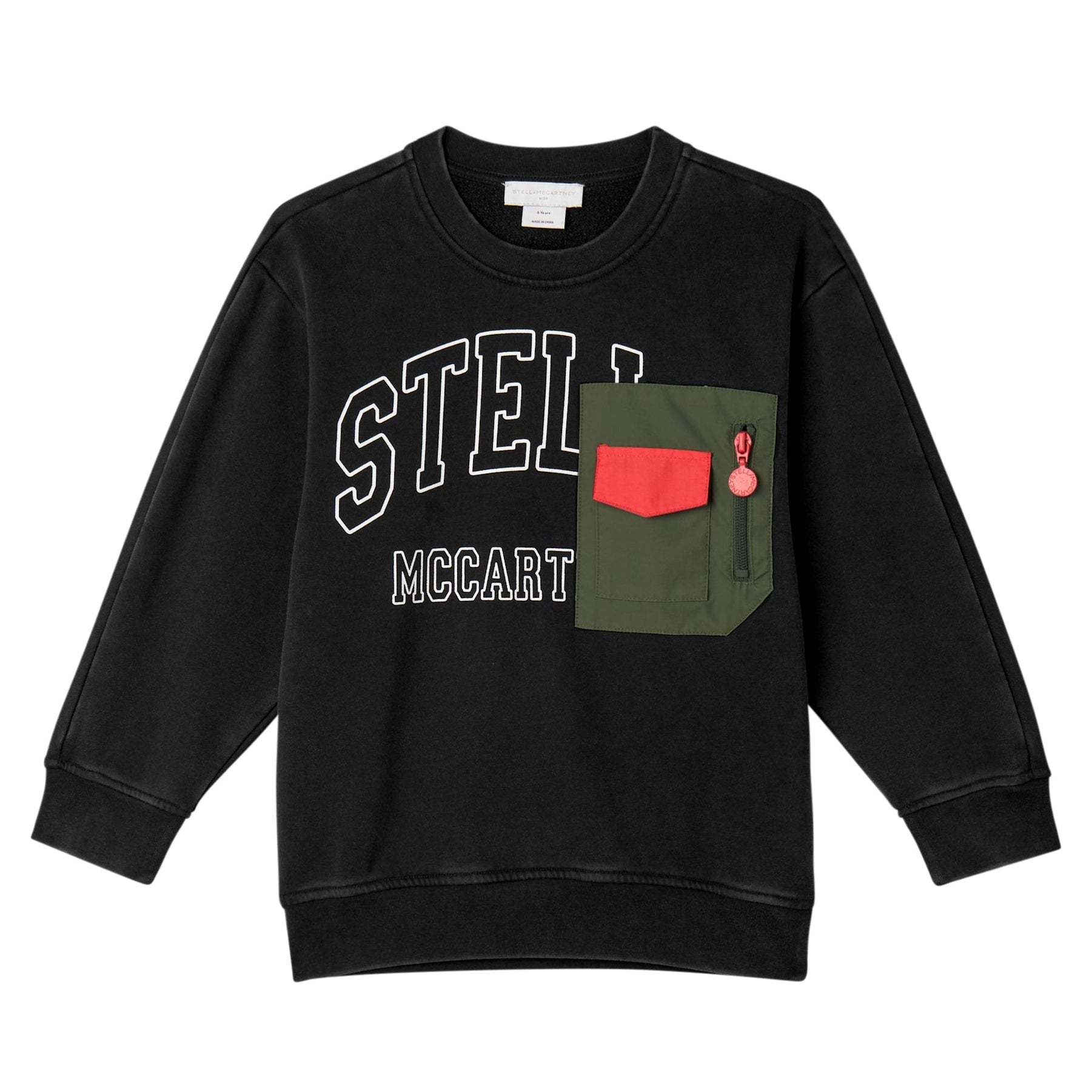 Μπλούζα φούτερ για παιδιά με διακοσμητική τσέπη και λογότυπο στο μπροστινό μέρος και στρογγυλή λαιμόκοψη.