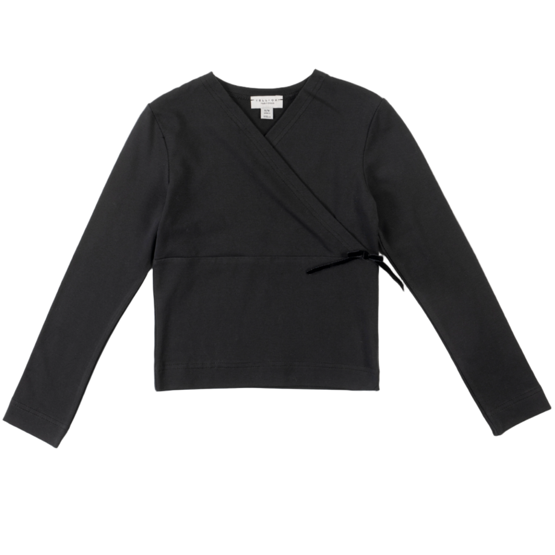 Μακρυμάνικη μπλούζα για παιδιά με λαιμόκοψη V και διακοσμητικό φιόγκο στο μπροστινό μέρος.