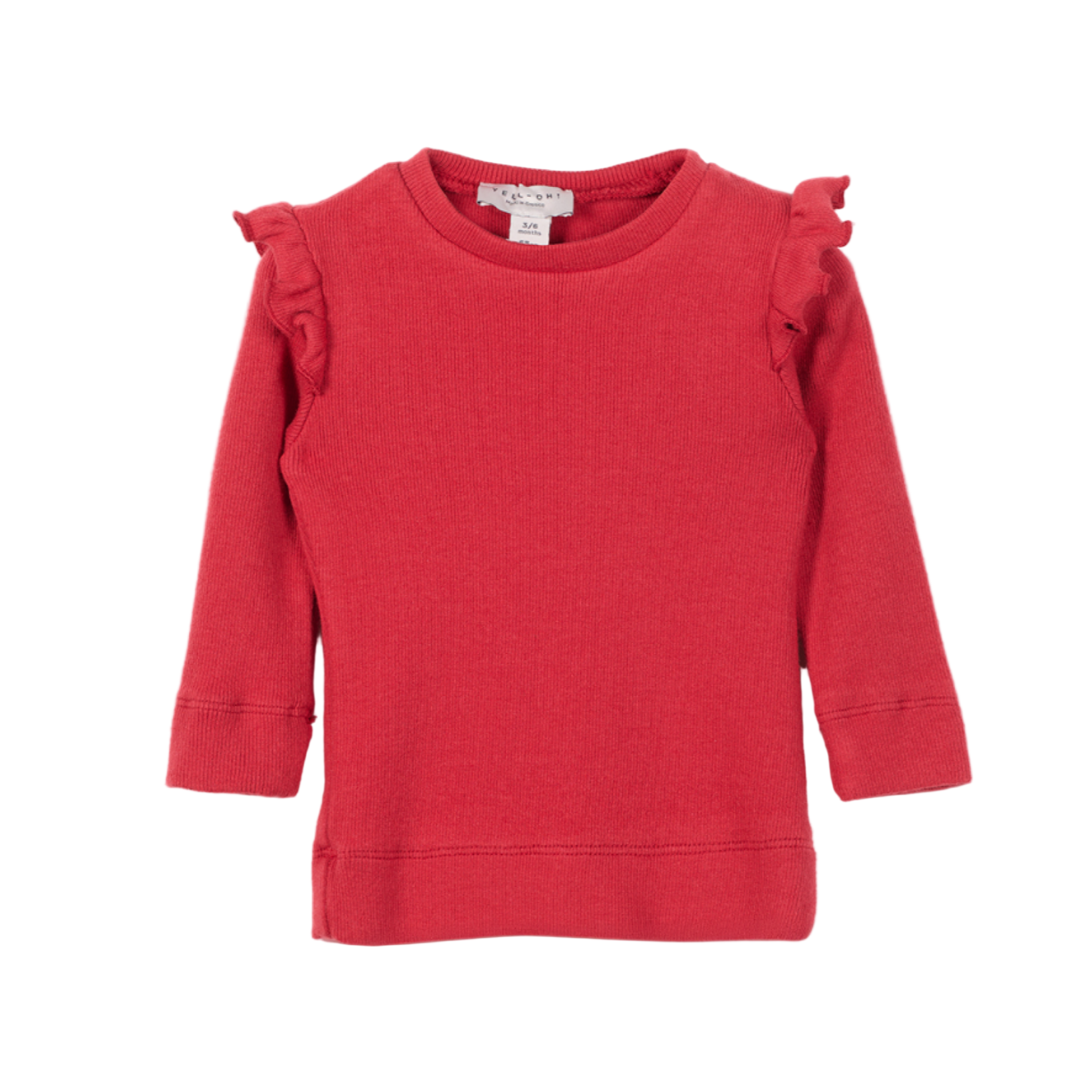Μακρυμάνικη μπλούζα για μωρά με ριμπ ύφανση και φρου-φρου στους ώμους.