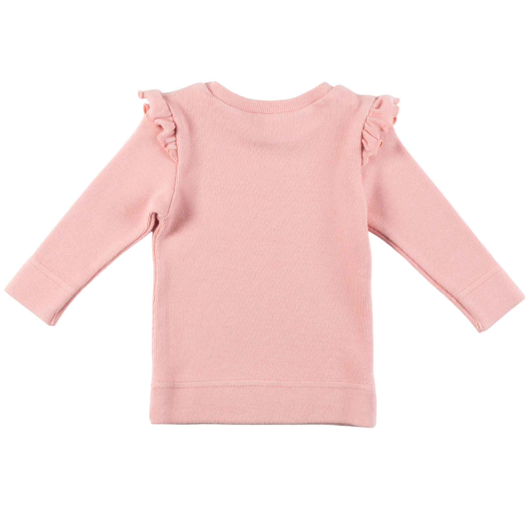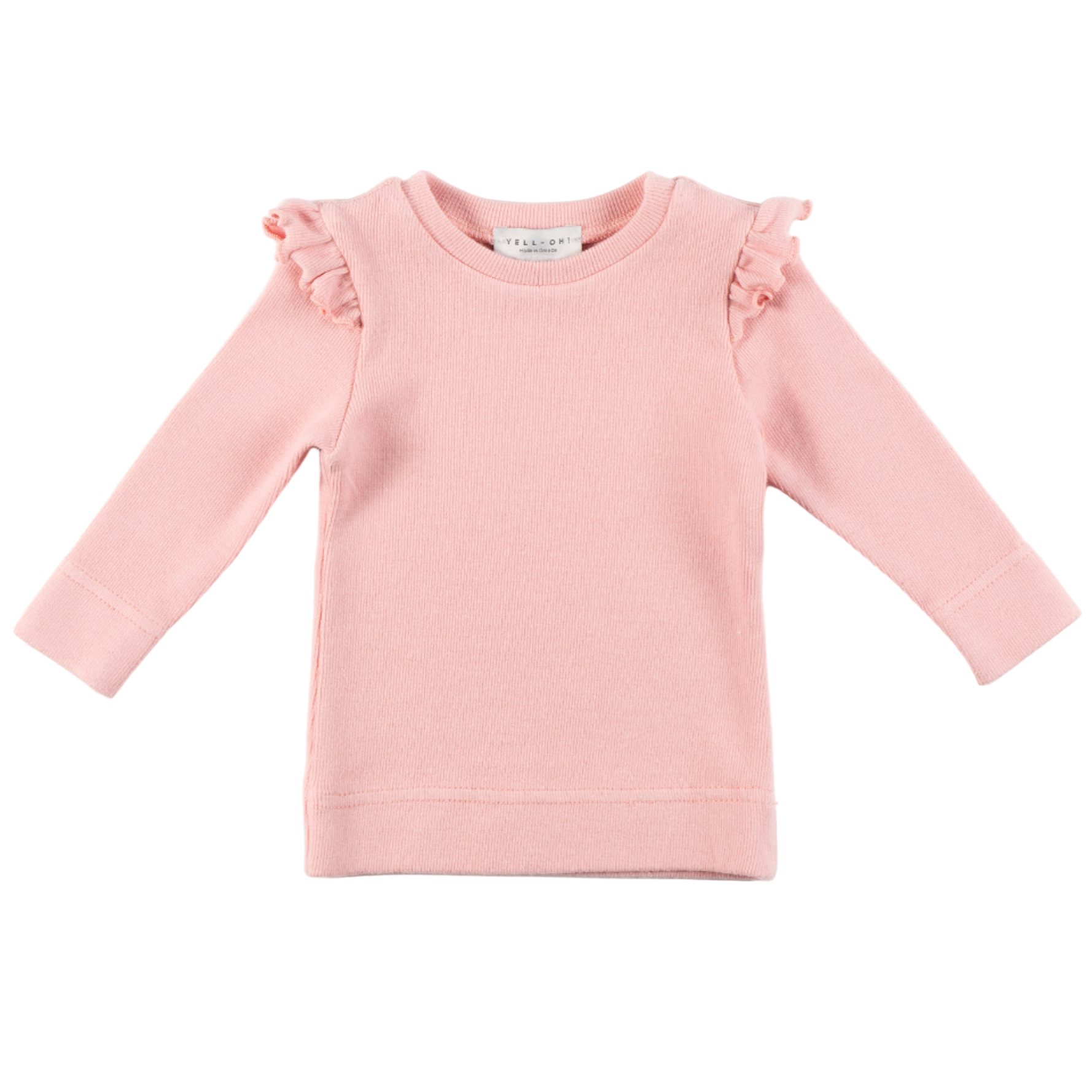 Μακρυμάνικη μπλούζα για μωρά με ριμπ ύφανση και φρου-φρου στους ώμους.