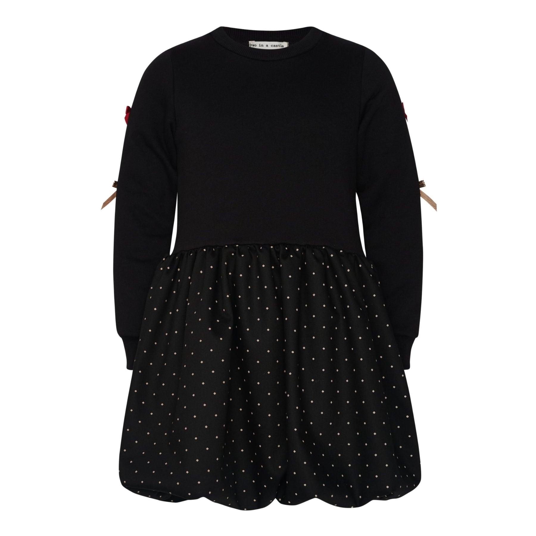 Μακρυμάνικο φόρεμα για παιδιά με πουά φούστα και διακοσμητικούς φιόγκους στα μανίκια.