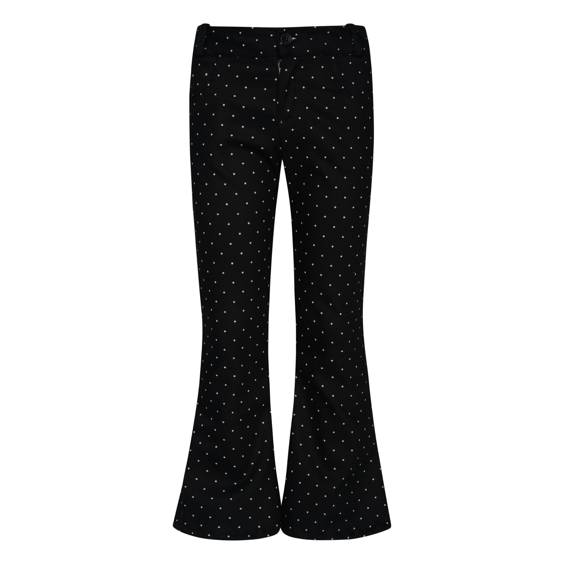 Πουά παντελόνι καμπάνα για παιδιά με κλείσιμο με κουμπί και φερμουάρ.