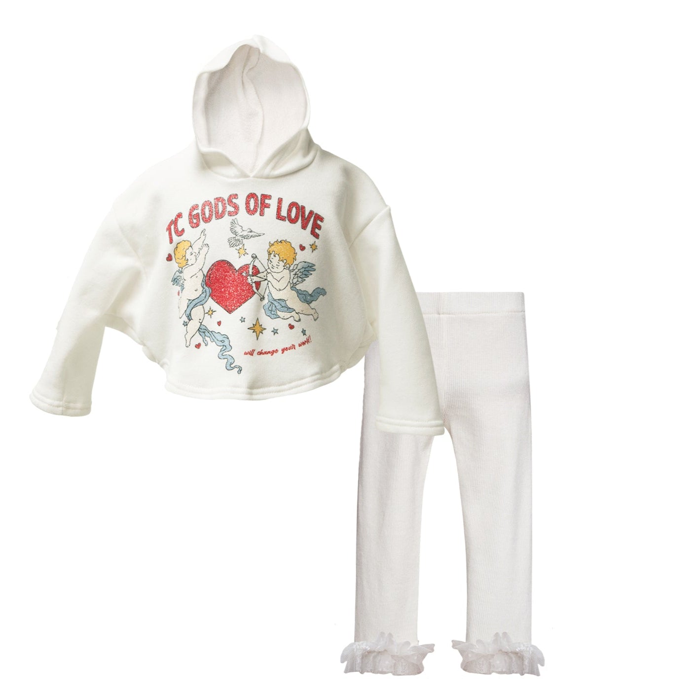 Σετ για μωρά που αποτελείται από κροπ τοπ φούτερ με διασκεδαστικό σχέδιο στο μπροστινό μέρος με κουκούλα και κολάν με ριμπ ύφανση με φρου-φρου στο κάτω μέρος.