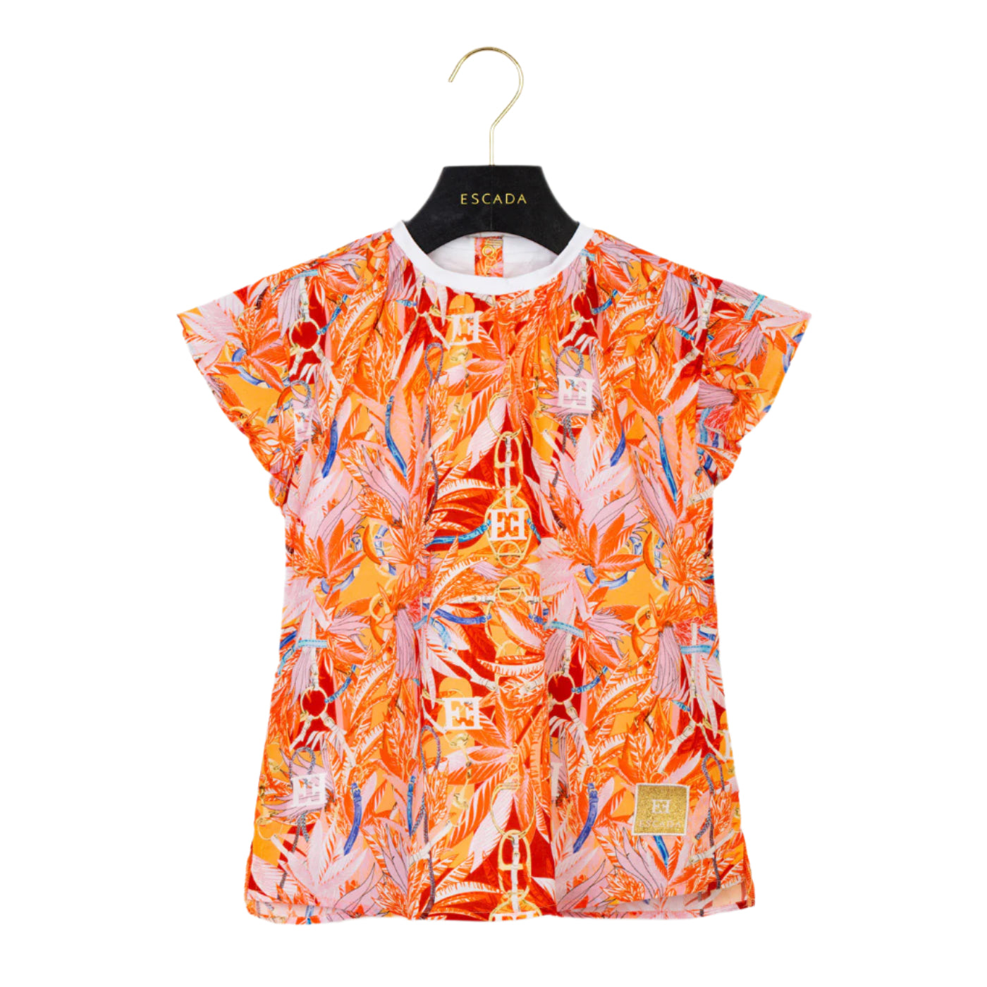 Κοντομάνικη πλούζα για παιδιά με διασκεδαστικό σχέδιο σε όλη την επιφάνεια, βολάν στα μανίκια και στρογγυλή λαιμόκοψη.